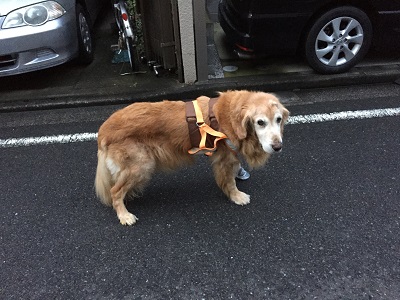 今朝は久しぶりに雨が上がり気分が良いらしく、早朝にトイレを兼ねて少し外を歩いていました。