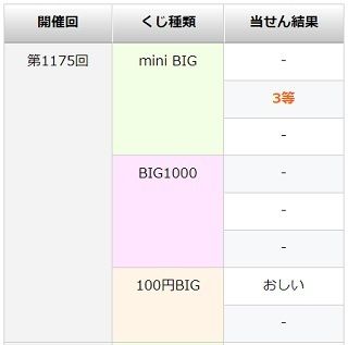 第1175回。スポーツくじ mini BIG が、また当せんしました(笑)。
