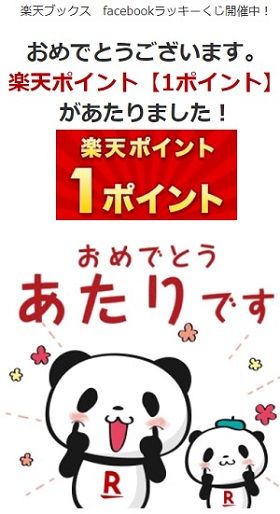 1. 楽天ブックス facebook ラッキーくじ、当せん。1ポイント。