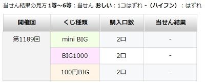 ところで、けふの楽天ラッキーくじのやうに、今回の1189回も、BIG.はすべてはずれた(><)。