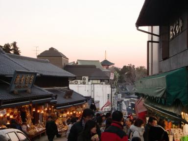 年末の旅で唯一一日中滞在していた土地が京都でした。なのでラーメンだけでなく観光もゆっくりできる時間がありました。でも過去二回京都に行ったときに主要な観光地は行ったので、今回はその他のところで良いところに行ってみたいと考えていました。最初に考えたのは京都御所だったのですがネットで申し込みの予約をしようと思ったらその日はもう年末年始の休みに入っているみたいだったので無理でした。で叔父にきいたら伏見がよいのではとのことだったのでそこに決定しました。一日乗車券でぎりぎり行けるところだったのでバスで京都駅から向かいました。伏見は京都の中心とは異なる街並みで独特の雰囲気を持っています。文化の歴史も違ったり、酒蔵が多くある、など中心部とは違ったところを味わうことができ非常に面白い街でした。見所はそんなに多くないし街も広くないのですが僕はこの場所が気に入りました。川沿いからは月桂冠の古い酒蔵を眺めることができました。あいにくもう年末の休みに入っていて見学することはできませんでしたが。この写真からは街並みもわかると思いますがもうひとつ特徴的なことがあります。ここは有名な鶏肉料理のお店の裏なのですが、湧き水が流れていてそれを一般の人が汲んでいる、という光景をみることできます。主婦の方や飲食店の方も大きな容器を何個も持ってきて水を入れていました。神社の中にも水を汲むことができる場所があり同じ光景がみられました。そのことによって久しぶりに水の重要さというのを思い起こさせてくれました。日本では蛇口をひねればどこからでも飲料水がでてくるのですが、この街にとっては水をとても重要なものだと考えているのです。水によって料理の味が変わるということを認識しているのです。現代でふつうに生活しているとそういうことって意識しないのですがここの人たちは水がどれだけ大切なものかというのをわかっているのです。日本人の文化の歴史を垣間見れたことと、当たり前だけど忘れられかけていることがしっかりと存在しているということがとてもうれしかったのでした。酒蔵も水がおいしいからいっぱい造られたのでありこの行為はこの街を象徴していました。昼ごはんは黄桜にしました。日本酒を飲みたい気分ではなくてここはビールを醸造しているのでちょうどよいと思ったのです。奥にみえているのが三種類のビールの飲み比べセットでこの御膳は昼の中では高めのやつです(といっても1000円台ですが)。お米は釜で炊いていてとてもおいしかったし野菜の煮物など素朴だけどとてもおいしいというものがいくつもありました。てんつゆもだしをとってつくったものだったりと、最上級ではないけれどしっかりと造られている料理ばかりでこの値段でこういういものが食べられるのは幸せなことです。ここで京野菜のおいしさ、すばらしさを知って開花してしまい夜も野菜のカレーを食べてしまいました(ここで食べてラーメンを食べた後に・)。野菜をメインにした有名な料理屋さんがあるみたいなのですがその日は休みだったので次回訪れるときには行ってみようと思っています。肉や魚が有名でおいしい場所はたくさんありますが野菜がおいしくて売りにしている土地というのは少ないと思うので僕にとって京都はうれしい町です。水と野菜という身近にあるけれどふだんはあまり重要視されていないものについて考えることができた、という思いがけない収穫のあった伏見探訪だったのでした。今年は竜馬のブームがすごいのでこの街は大々的に取り上げられてとても賑わうのではないかと思います。その前のまだ静かな時に行ってみるとよいのではないでしょうか。 夕方には急遽思い立って嵐山に行きました。夕やけのきれいな景色をみたいと思ったので。でもバスの中で一番きれいな時を迎えてしまい到着したときにはピークをすぎてしまってました。無念でした。なので京野菜カレーを食べたのでした。ついでに祇園をぶらぶらしたときの写真です。これで年末の4日間西へ行ったときの旅のことは終了です。ラーメンやドイツワインで書きたいことがたまっているのでまだまだがんばって更新します。