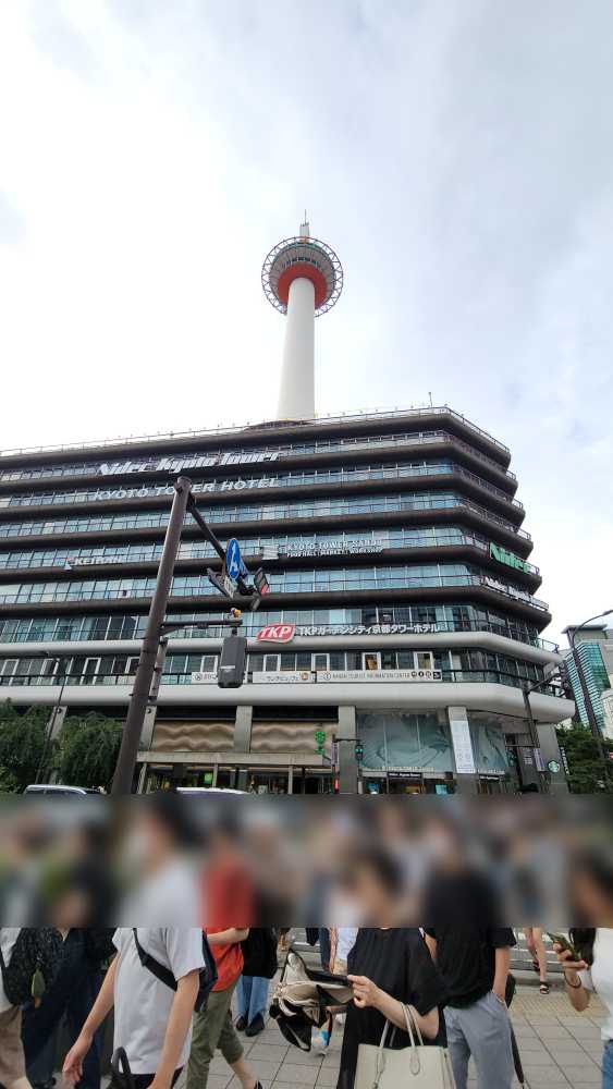 京都駅前に聳える、UFOを串刺しにしたような(…?)あのタワー3日間にわたる京都旅行(鉄分豊富ツアー?)は、いよいよ最後の立ち寄り施設となりました。ニデック京都タワー東京タワー、スカイツリーなどと並んで、国内屈指の有名タワー「京都タワー」(設置目的は違いますが)に登りました。チケットはアソビューで、京都鉄道博物館入館券とのセット券を買っておきました(※楽天トラベルでは単独券のみ)。順路通りに進んでエレベータに乗車。かごの中は、京都名所のにぎやかなイラストが描かれています。展望に予習に…なるかな?比叡山の方角。うっすら雲に隠れていました。有名寺社仏閣が見えるかといえば…周囲のビルがそれより高いので。目の前の東本願寺。東本願寺の前で湾曲している大通りは、京都の目抜き通りのひとつ「烏丸通」です。南北に走る地下鉄烏丸線は、この烏丸通の地下を走っています。この大仏さんは何でしょうか。教えて下さい。これは、清水寺ですねえ。望遠鏡で見てみると、参拝客が殺到していました。他の方も、清水寺方面を望遠して「おお、すげえ!」。清水寺ではなく、人だかりが凄いという感想らしい(苦笑)一方、タワーの東南東側を見ると、東山トンネルを抜けてきた新幹線がやってきました。高頻度運行なので、よく見えない寺社より新幹線を撮り鉄(笑)多少は京都らしい情景になったかな?奈良線と交差する場面と撮れました。奈良線に乗ると、伏見稲荷や宇治の平等院(10円玉の)を見に行けます。西南西の方角には、2日目の午前に参拝した東寺がみえます。周囲に高いビルがないので、はっきりと見えます。京都の有名観光地の位置をよく把握している人には楽しめるタワーです。だいたい40分くらいで降りてきました。ちょっと長居だったかな。その大半を新幹線撮影に充てたというわけです。なんのこっちゃ?京都タワーホテル下層階のビル部分には、ホテルが入っています。京阪グループのホテルです。また、お土産品店街(京都タワーサンド)と、ホテル内に貸し会議室(TKP)もあります。時刻は16時50分。いい加減に移動を開始しないと時間がありません。伊丹空港へ移動開始。(つづく)【余話】京都タワーの前で信号待ちをしていたら、バス・トラック趣味界隈で有名なあの業者のアドトラックが通過しました思わず動画を撮影。(画像を一部加工/静止画にしています)音声控えめ、色も控えめの京都仕様。
