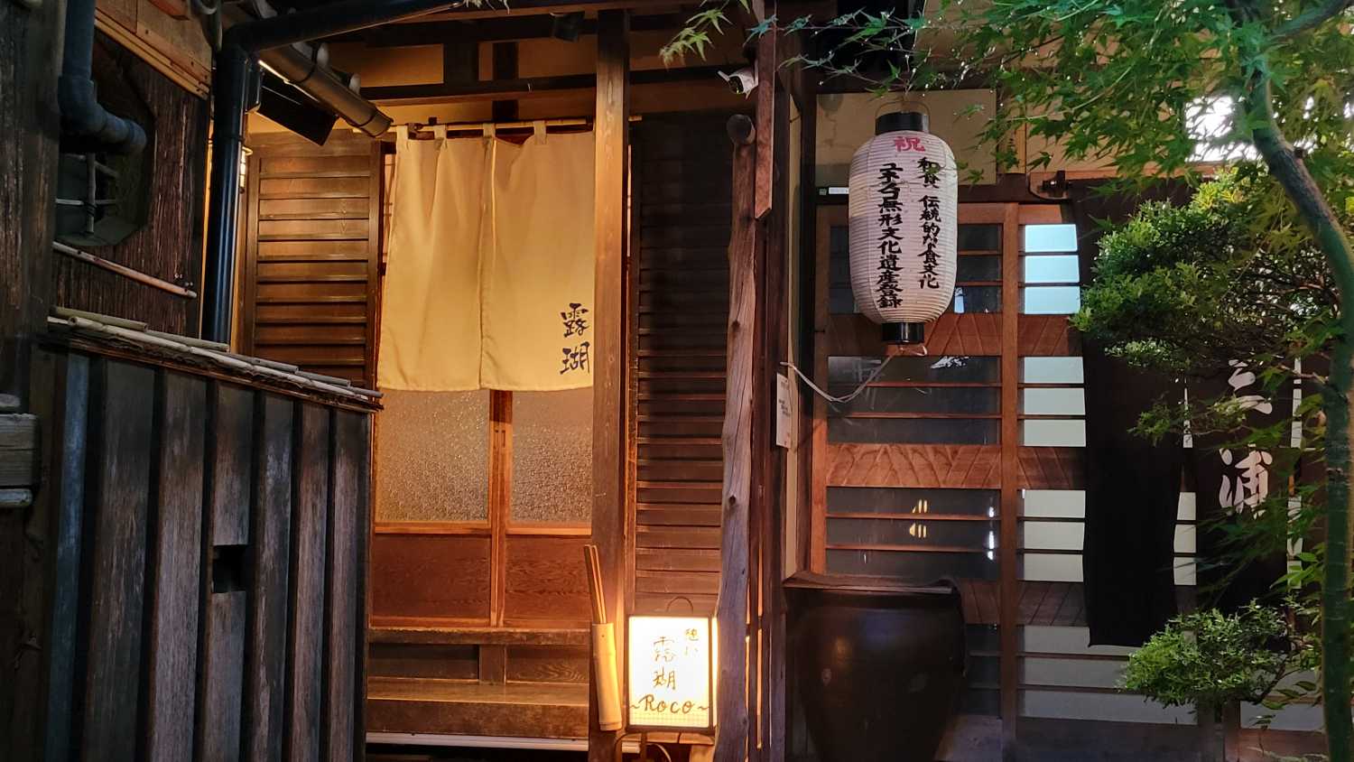 雨の先斗町~木屋町通を散策し、一之舟入までやってきました。夜のお食事は、こちらを予約していました! 憩い 露瑚(割烹露瑚)鴨川と高瀬川(運河)とに挟まれた木屋町通沿いにお店を構える、築120年超の京町家を使っている割烹です。「史跡 高瀬川一之舟入」のほぼ真向かいの路地を入った奥にあり、お店の位置としては隠れ家的な位置になっています。路地の入り口は行灯が目印です。突き当りの左側が、割烹露瑚さんです。 お店へ通じる路地には、小料理屋さんが並び、雰囲気がとても良かったです。いつか、ふらっと入ってみたいものです。 夏の風物詩「床席」(鴨川納涼床)を楽しみにしていましたが、あいにくの雨で残念。2階の窓側席にご案内いただきました。京都鴨川の納涼床は、雨天時用として、室内にも予約数分の席を用意することになっているそうです。京懐石を楽しみにしていても、最初はやっぱりビール!クラフトビール「京都麦酒 蔵のかほり」を注文しました。製造元は「Kizakura…」のCMでおなじみ黄桜酒造さん。昔の「きィざくらぁ~」の方がおなじみかな?黄桜 楽天市場店へ 麦酒をしっかり味わう、お料理の初めにピッタリのビールでした。日中の暑さも手伝って、あっという間に1本空っぽ!(つづく)