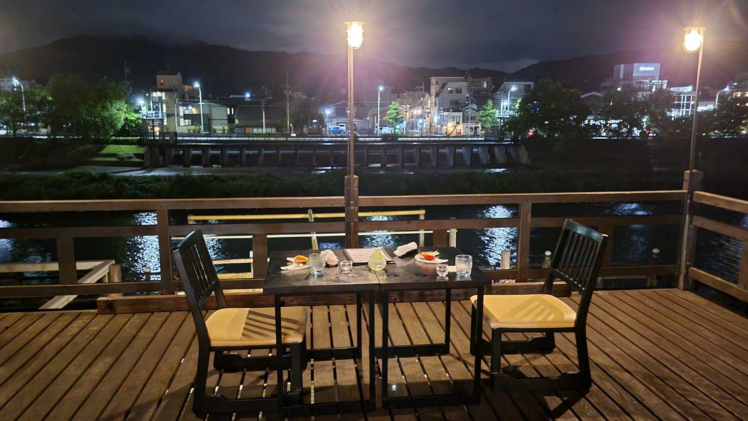 京都の夜は川床で…ところが生憎の雨。木屋町通の路地裏に佇む「憩い露瑚」(割烹露瑚)さんの2階席にお通しいただいて、京都麦酒を開けたところ…(前回の記事)の続きです。にほんブログ村にほんブログ村※2025年6月のお料理の画像ですグルメブログではなく、私Kazuには食レポ能力もないので、簡単な紹介とさせていただきます。雰囲気をお楽しみください。京町家で念願の京料理、嬉しい 前菜。 鱧(はも)!北日本ではまずお目にかからないお料理です。 お造り。刺身がちょこんと…ではなく、どれも切身が厚く、ここまで満足な1人前のお造りはお目にかかったことがないかもしれません!さらにお造りにも鱧!鱧の刺身はたぶん人生2度目。丁寧な骨切りがされており、おいしくいただきました。 と、ここで、雨が上がり、隣席のお客さんもお帰りになったので、窓を開けていただきました。 加えて、スリッパもお借りして、少しでも気分を味わおうと納涼床に出てみました。まだ暑さは少し残っているものの、日中の日射はなく、風がすずやかになっていました。(もしかしたら、構造から推測するに、こちらのスペースは建付けなのかもしれません・未確認)※通常、納涼床は仮設 お酒2つ目は、京都だから!と、京都麦酒「抹茶」を注文。…うん、これは、お料理には合わなかったな。単独でおいしく。 焼物は鮎の塩焼き。夏ですね。塩加減よく、丸ごと食べられました。と、焼物が運ばれてきたところで、店員さんから嬉しいご提案「外でお召し上がりになりますか?」もちろん!諦めていた納涼床体験ができることになりました我々もお手伝いして、テーブルごとお外へ移動! 夜に響く鴨川の流れの音と、対岸から聞こえる車の喧騒を聞きながら、京都の夏の風物詩を満喫するひととき。他にお客さんはおらず、貸切状態だったのもいい! お部屋を眺めるのもまた一興。 ここでお酒を再注文。こんどは地酒で。「まつもと」伏見のお酒です。ここで、(おそらく)吸物として、茶そばが供されました。続いて… 京野菜「賀茂なす」。鱧と賀茂なす、京都の夏の食材に満足。 小鍋はお肉!この写真は大サイズのままで…。(スマホの方は変わりません) 御料理も終盤、ちりめんが載ってご飯が進みます♪お漬物も。 最後の水物は、これまでのテイストから一転して、なんとマンゴー意表を突かれました。そしてこのマンゴーのおいしいこと!甘さが際立ち、ペロッと食べてしまいました。 お茶をいただき、納涼床の余韻に浸り… 着席からおよそ2時間、お暇させていただきました。お料理はとてもおいしい。京料理というと薄味?という北日本人の勝手なイメージがありましたがさにあらず、出汁や塩気が利き、味がしっかり分かる数々でした。お値段も、京都中心部での、床席での会席料理としてはお手頃(酒代込み2人で20,000円かからなかった)で、非常に良かったです。憩い露瑚(割烹露瑚)京都市中京区上樵木町491-6・詳細は、お店のホームページをご覧下さい・床席は夏の間のみです https://rocokyoto.website/ ネット予約ができます列車・バスでのアクセス京都市営地下鉄東西線「京都市役所前」より徒歩3分京阪本線「三条」より徒歩5分 「史跡 高瀬川一之舟入」および押小路橋の真向かい。「やました」さんの右隣の路地を入る。営業時間外は路地の入口の扉が閉まっているようです。地下鉄駅からは、2番出口を出て高瀬川沿いを北へ歩いて下さい。3番出口を出てホテルオークラ沿いを北に歩き、右折する経路も風情があります。ホテルオークラ京都 「史跡 高瀬川一之舟入」については、昨年ガイドさんと一緒に歩いたときのレポをUPしていますので、そちらもぜひご覧ください。京都の高瀬川 史跡「一之舟入跡」 (2024年7月来訪)なお、「納涼床」も「川床」も京都の夏の風物詩ですが…鴨川沿いのお店が仮設テラス席を設ける「納涼床」は「ゆか」、貴船や高雄の渓流の真上に座敷を設ける「川床」は「どこ」とよむ場合が一般的だそうです。