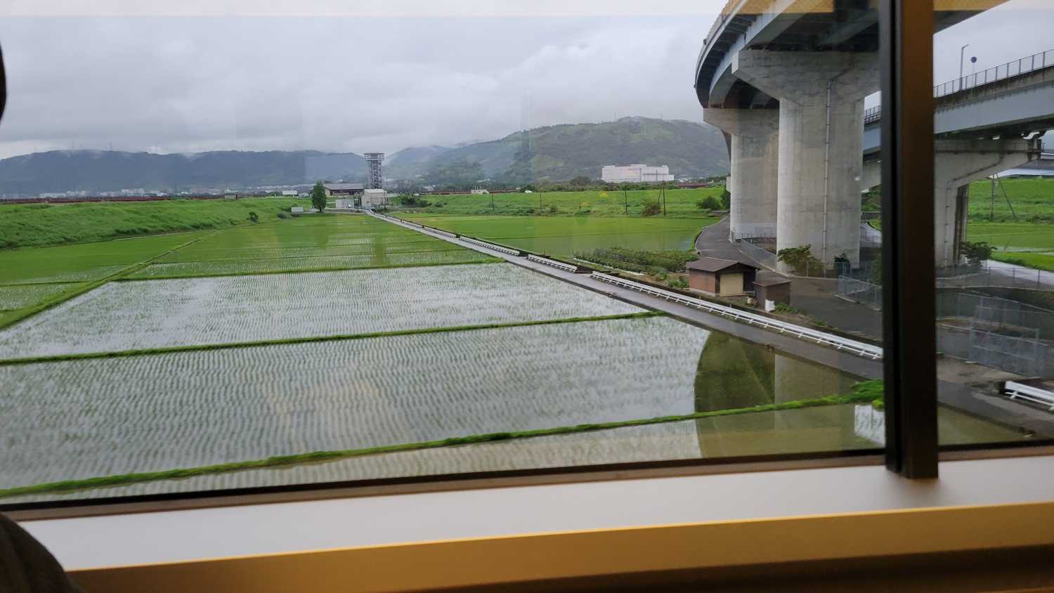 雲の上のお昼ご飯。搭乗前に空港のコンビニで買ったサンドイッチです。 一緒に買ったバウムクーヘンは、気圧差で袋がパンパン 秋田空港を離陸して33分、新潟市街地が見えてきました。左手の川は阿賀野川、中央の、防波堤が伸びているところが信濃川河口・新潟港。新潟港より少し右奥に大きな湖沼が見えますが、鳥屋野潟ですね。 秋田空港を離陸して50分。雲の切れ間から、雪を戴く険しい山が見えました。位置的に北アルプスでしょうか? この川は神通川ぽいですが、どうでしょう? 富山市街地を少し過ぎました。真下の海岸は雨晴海岸、海に注いでいる2本の川は小矢部川と庄川。掘り込み港の富山新港も見えます。次は能登半島…と思いきや、飛行機はここから内陸に針路を取りました。 おやおや、雲の切れ間から川の河口がちらっと。 教科書で見たような見本のようなV字谷が見えました。 見事に曲がりくねった穿入蛇行を呈する川。川自体はあまり太くないですが、地形はすごいS字ですね。治水工事で川の流路は変化しないようにコントロールしていると思いますが、自然のままであれば、何万年後かは分かりませんが、森が薄くなっている部分で上流と下流がつながってしまうでしょう。と、地理屋の端くれは興奮しながら機窓に夢中ですが、ランドマークはなく、正直、「ここはどこ?」。 …S字地形の写真から1分後、雲が晴れ、突如、この景色が目に飛び込んできました。奥の湖は琵琶湖、手前の大都市は… 街のド真ん中にある四角い森は、明らかに「京都御所」ですね。2本の川が合流しているところが、近年インスタ映えにより一躍観光地になった「鴨川デルタ」、その2本の川に挟まれた細長い森が「下鴨神社」と「糺の森」。琵琶湖とも、京都市街地とも山で隔絶された市街地がありますが、あそこが山科です。どうやら当機は、庄川沿い~敦賀~小浜~京都と飛行したようです。なお、フライトレーダー24でここ1週間のプレイバックをを見ると、秋田~伊丹線は信州から木曽谷か飛騨川に沿い、三重県の津のあたりから名張を越えて大阪平野に入る航路をとることが多いようで、京都上空を飛ぶのはあまりないようです。凄いS字の蛇行もgoogle mapで見つけまして、京都市右京区京北宮町の「黒田の百年桜」のところのようです。 郊外ニュータウン的な団地が幾何学的に広がっている光景。大阪に向かって徐々に高度を下げていきます。ベルトサインも点いていたと思います。 大阪市街地上空に差し掛かりました。この辺からは、南側からの着陸機(32R・32L)であれば見られる景色です。高いビルはあべのハルカスですねえ。 大阪城公園。 さすがは日本第二の都市。ビル群でも見ていて飽きません。飛行機は真っすぐに伊丹目指して降下していきます。 淀川を越えると、着陸寸前。宮原操車場ですね。 14:39、大阪国際空港(伊丹空港)に無事到着しました。秋田空港から1時間39分の航行でした。 ペットボトルが気圧差で潰れました。 降機が一番最後だったので、CAさんに御許可いただいて機内のシート配置を撮っておきました。座り心地が良いシートかといえば微妙ですが、長距離は飛ばない機種なので、この程度でも十分。 Q400は、東京の方には馴染みのない飛行機かと思いますが(羽田・成田に定期便がない)、ANAローカル線の主力機。客室後方にギャレー、前方にラバトリーがあります。