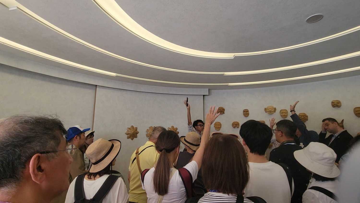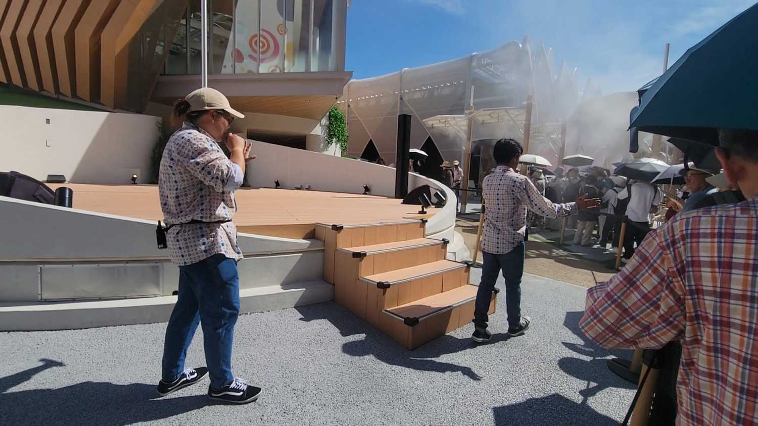 20分ほど歌とダンスを楽しんで、パビリオンの入口まで誘導されました。だいたい30人くらいずつ入館させているようです。最後にシアターで着席しての映像観賞があったので、入口でコントロールしているようです。