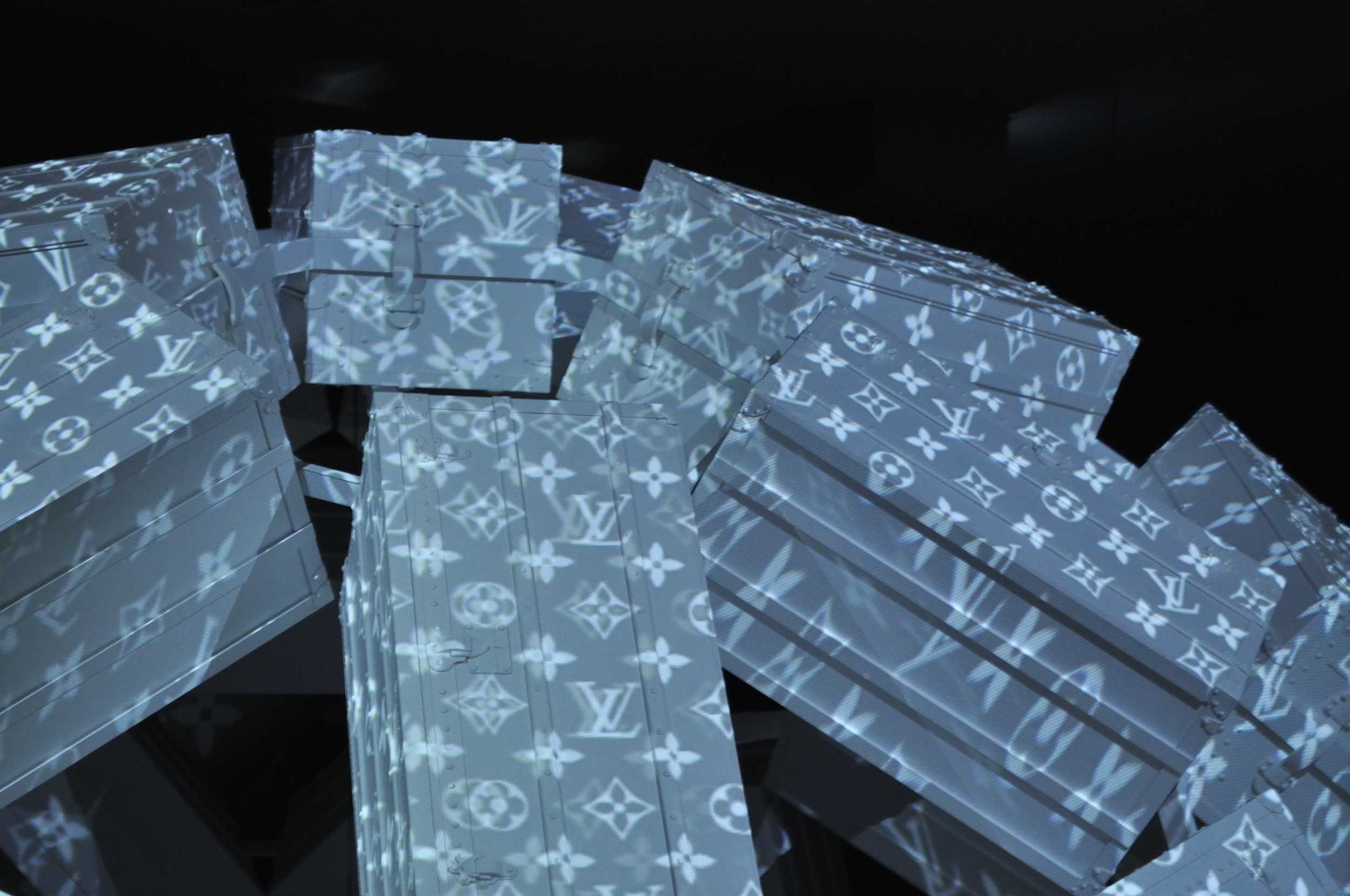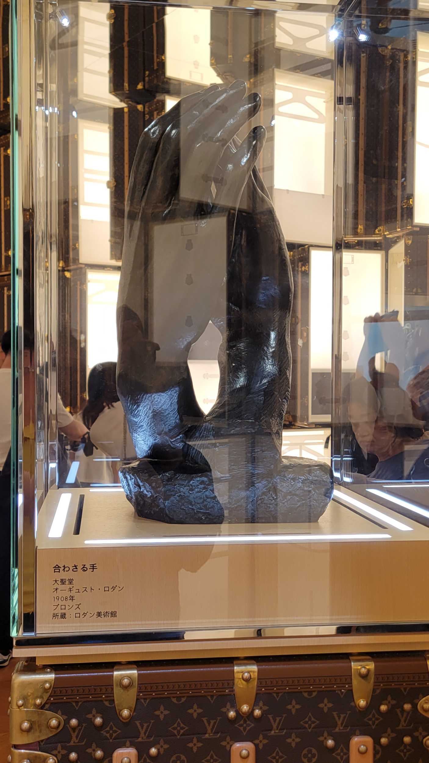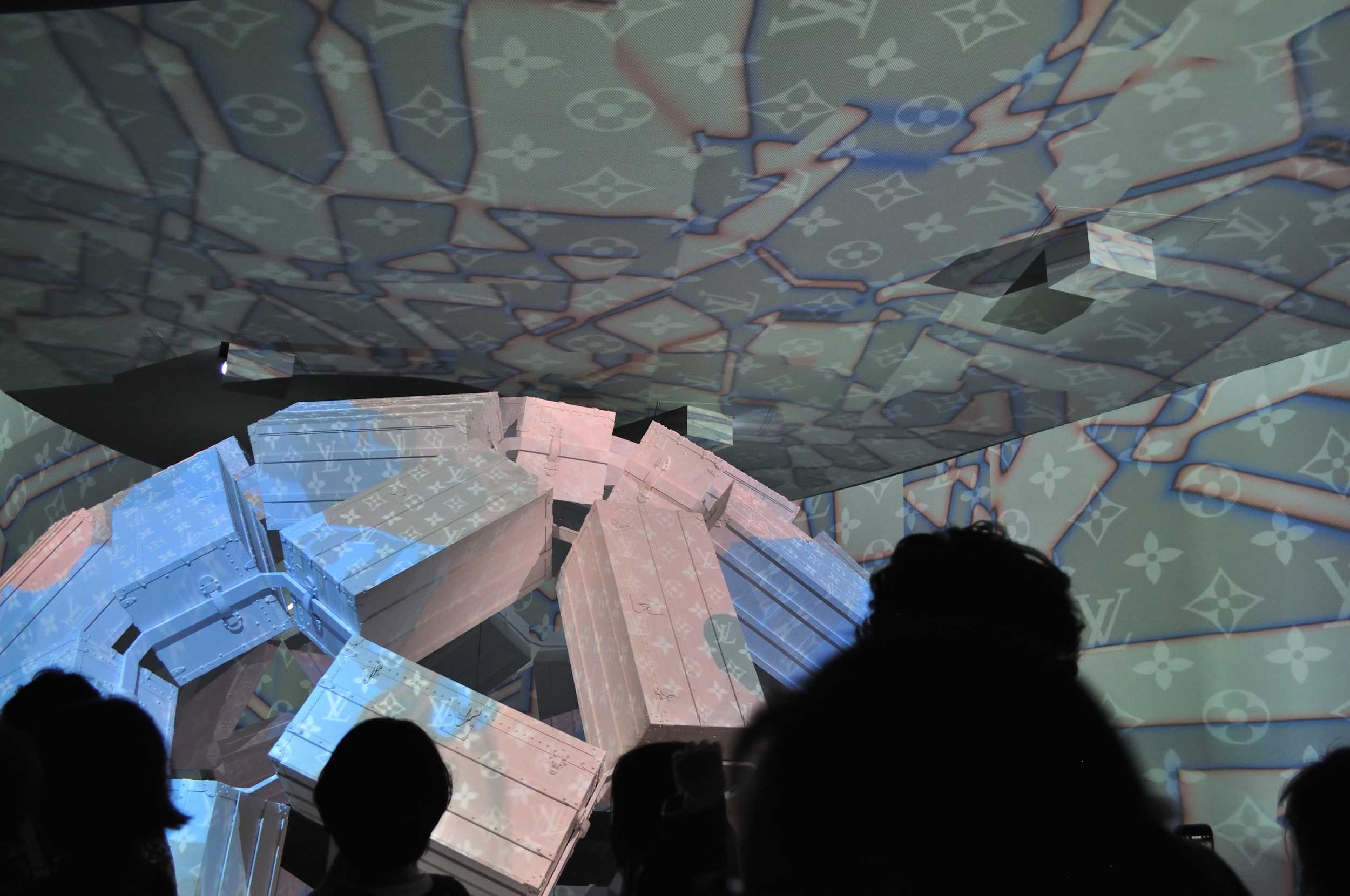 部屋の中央にはロダンの彫刻があり、取り囲むように壁面いっぱいに84個のルイ・ヴィトンのワードローブトランクが(天井は鏡面)。トランク1個1個に、職人技が表現されているそうです。