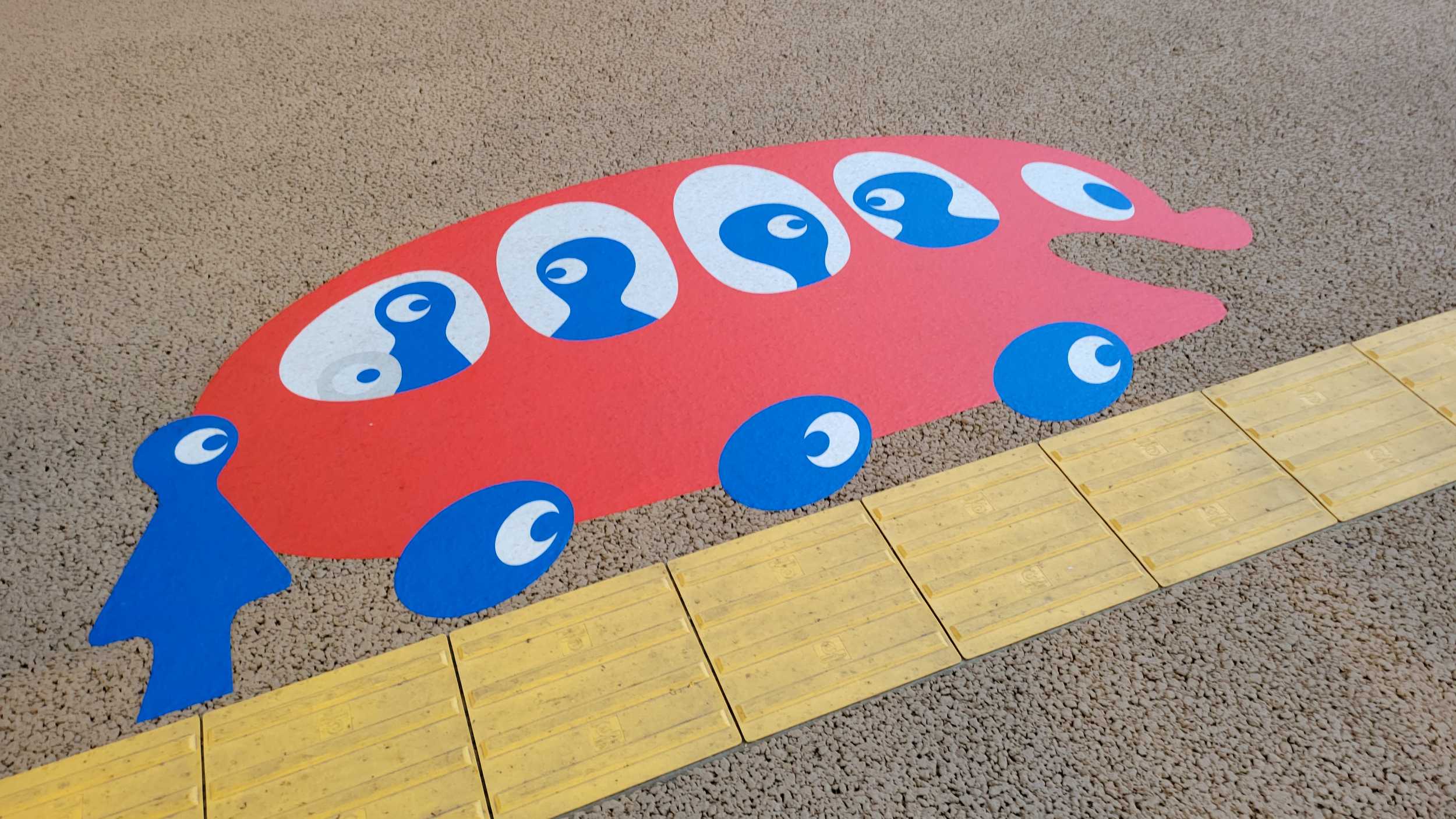 足ともには、コミャク達が乗っているバスのイラストサインもあります。お気づきかな?
