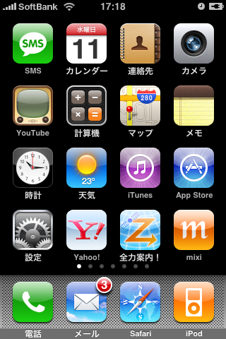 一昨日、携帯電話を水に落としてしまいました。以前から書いていたように、そろそろiPhoneもと考えていた矢先だったので、思い切って機種変更をすることにしました。感想は、これは携帯電話ではなくMacBookだというイメージです。細かい検証は後々何回かに分けて特集しようと思います。特に、MobileMe利用者にはとっても便利な機能が満載です。本日は、予告程度で終わります。