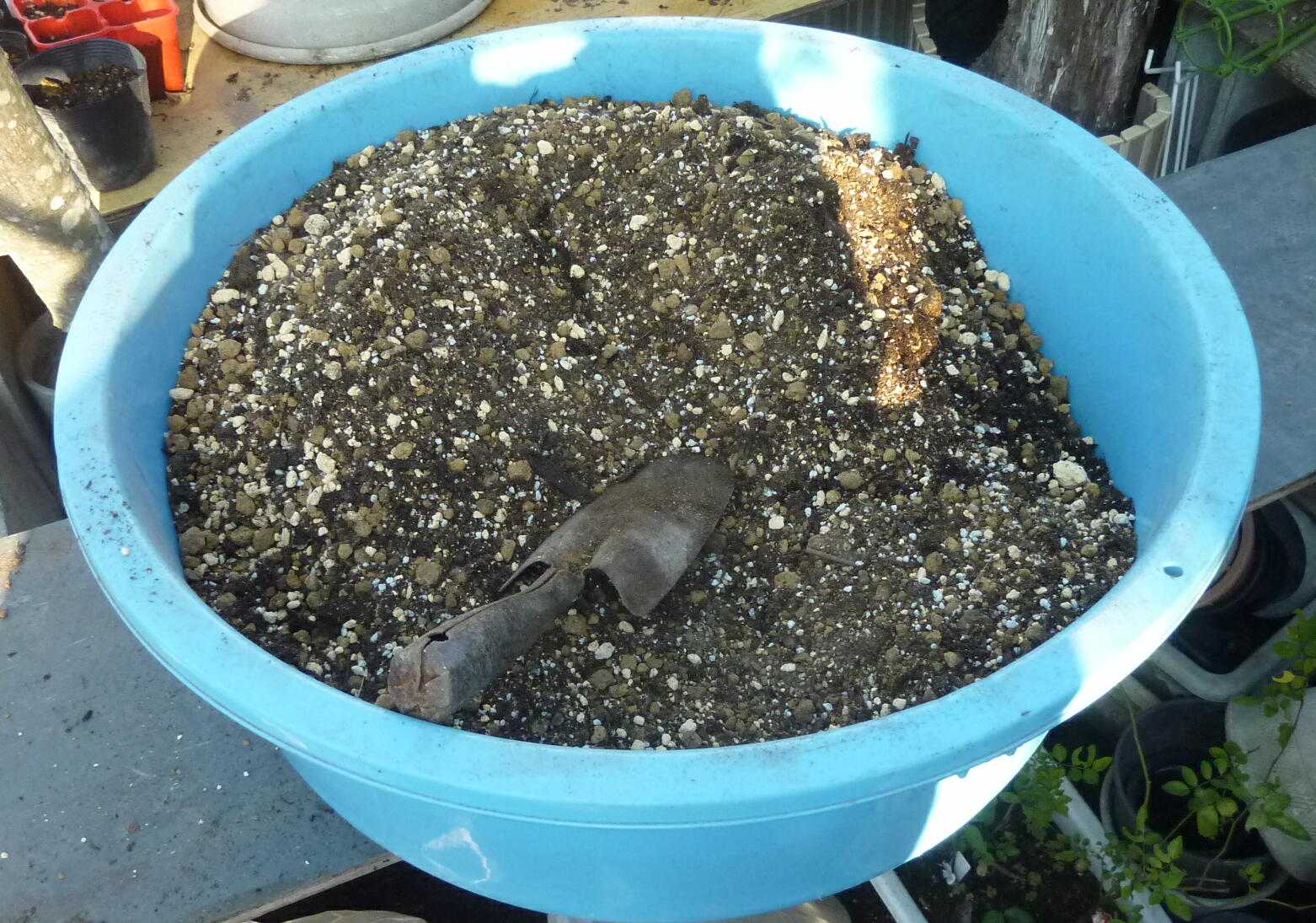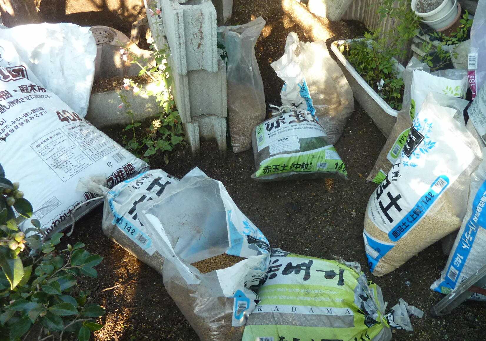 再生土1・バーク堆肥1・赤玉小1・赤玉中0.5・鹿沼土0.5