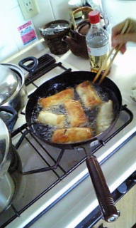 5月12日、11時よりつぶ美人の会を開催しました。今回ご参加のつぶ美人さんたちは、4月にも参加していただいたみなさまです。またまたのご参加、ありがとうございます。さて、5月5日は何の日でしたか?こどもの日です。そうですね、当たり!です。でも、「立夏」でもあったのですよ。いよいよ夏のはじまりです。気が付けば、桜の葉もすっかり緑になっています。新緑が美しく見えます。空気もさわやかです。暦の上では夏なんですね。でも、でも、今年はなんか変ですよ。寒かったり、暖かかったり、暑かったりです。春なんだか、冬なんだか・・・・・・・・? 私たちの自律神経は、きっと大忙しのことでしょう。今の季節、旬の食材は、「たけのこ」ですね。春の出初めとは違ってかなり値段もお手ごろです。大きくてたっぷりたべられます。ということで、今回のメニューは●たけのこ、たっぷり、「春巻きちゃん」です。春巻きの中身は「陰陽重ね煮」でつくりましょう。圧力鍋なら3分でできあがりです。お鍋に入れる順番で材料を書きますね。1.干ししいたけ10枚(戻しておいたもの)2.もやし1袋3.きゃべつ4分の1個4.にんじん1本(大きめ)すべてを千切りにして順番とおりお鍋に重ねて入れます。この上に豚赤肉のひき肉200グラム。この上に塩、お酒、オイスターソース、しょうゆを適量、しいたけの戻し汁を200cc。ふたをして、ガスの火をつける。おもりがまわったら弱火で3分でOK!ピンがさがったら、ふたを開けて水溶きくず粉でとろみをつけて鍋の中のスープを野菜に絡めます。出来上がった具を春巻きの皮、20枚に適量を入れて巻きます。 中 温で、こんがりするまであげます。きつね色にあがったら出来上がりです! う~ん、おいしそうですよ!●ちょこっと夏気分!トマトのサラダ 暖かい日は、そろそろみずみずしい生野菜をいただきたくなりませんか?そろそろ、カラダはちょっと夏に移行しているのかな?夏の暑い時に生野菜をいただくのは、ほんとうにおいしいですよね。水分はお水で取るのではなく生野菜や果物を少しいただいてとるのがいいです。とはいっても、冷えのきつい方は要注意!生の野菜や南国の果物はカラダを冷やします。ということで、カラダのあたたまる玉ねぎのスライスを添えました。レッドオニオンは柔らかくみずみずしくておいしいですよね!陰の野菜には陽の野菜を一緒に!陰陽のバランスをとりましょうね! 玉ねぎのうえにおかかをのせて、さぁ、できあがり!●グリンピースごはんと大根となめこの味噌汁今回のごはんは、「グリンピース入りごはん」、お味噌汁は「大根となめこ」です。もちろんごはんも「陰陽重ね煮」の方法で炊きました。ということは、最初にお鍋にグリーンピースを入れます。その上に研いだお米です。それからお水を静かに入れて準備、OK!強火で炊いてピンが上がったら7分、ピンが下がったらできあがり!味噌汁のおだしは「焼き干し」でとりました。おしんこは秋田名物「いぶりがっこ」です。 さぁ、さぁ、おまたせしました!準備OK!いただきまぁ~す。おうちでいただくときは具をたっぷり入れてつくらないとね!とかいって、できあがった春巻きは市販のと比べると2倍ほどの大きさでした。りんごを丸々おろして発酵させた「りんご酢」をたっぷりつけて、みんなで大きなお口をあけていただきましたね。お腹いっぱい食べましたか!? 春巻きも味噌汁もごはんも完食でございました。ありがとうございました。次回もご参加よろしくお願いします。つぶ美人0号でした。