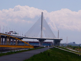 歩いた、真っ直ぐ道なりに。。。。ぶつかったのは荒川です。 土手にぶつかって、道はありません。土手つたいに道ではないところをとおって。。。なんとか、木根川橋を渡って八広へ。。。。 2時間ほど歩いてようやく亀戸天神へ。藤の花はまだちょっとはやかったけど。。。花は咲いて、人もいっぱいでした。私の念願の船橋屋の葛餅は今年も断念。何しろ人が多かった、並んでまで食べる気にはなれません。またいつか。。。。また、歩く。。。。押上駅近くでスカイツリーと対面。我が家からも見えますが、この場所だと首が痛くなるほど見上げないと。。。。目的達成。さぁ、電車に揺られて帰りましょう!青戸に戻って草餅をたべてお疲れ様。楽しい一日でした。このおはなしは、おしまい。またね。
