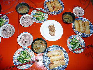 きのう、12月の「つぶ美人の会」のお食事会を開きました。今回のメニューは ●野菜をたっぷり、ぱりぱり春巻き春巻きの具は寸胴鍋で野菜を蒸し煮にしました。もちろん重ね煮です。もやし、キャベツ、長ネギ、たまねぎ、人参、お肉少々。野菜を重ねたらお醤油、お酒、お塩を入れて。。。。ガスに点火。中火で5分ほど、お肉に火がとおって、野菜がしんなりしてたら火を止める。不十分だったらもう少し火にかけて。片栗粉をお水で溶いて野菜をまとめます。春巻きの皮に包んで、出来上がり。●小松菜の煮びたしこちらも重ね煮で作ちゃおう!小松菜はよく洗って5cmぐらいに切って、お鍋に入れる。その上に油揚げをきってのせる。その上にチリメンをたっぷり載せる。お酒と、お醤油を少々。(お好みで)ふたをして、点火!中火で3分ぐらいかな。。。様子をみて柔らかめが好きだったら、もう少し火にかける。出来上がり!●冬瓜となめこの味噌汁 焼き干しと昆布でだしをしっかり取る事。冬瓜はよく火を通すと柔らかくておいしい。だしがおいしくないと水気の多い冬瓜がおいしくならないので要注意。自家製味噌を入れれば完璧です。●秋田名物「いぶりがっこ」「がっこ」とは秋田のことばで「漬物」の事。「きゅうりのがっこ」、「なすのがっこ」などといいます。「いぶりがっこ」は干した大根を燻製のように煙でいぶした後に、糠でつけたものです。スモーク大根の糠付けです。スモークした味が後を引いておいしい「がっこ」です。味噌汁にはまったお子様たちが多数です。けんクンはお母さんが口に運ぶのが待ちきれなくて、泣き出してしまいました。お母さんも、必死。結局、大人のお椀でいっぱいはのんだかな。。。おいしかったんだね、ありがとう。きのこが大すきというあやのチャン。こちらも待ちきれずに、自分からお椀にに手を伸ばして、大人並にいただいてましたね。ありがとう。なめこは自宅ではいただかないというこうたクン。なぜか、しっかり食べてました。これにはお母さんも?????参加していただいた皆さんと楽しい会話ができて楽しい時間を過ごすことができました。また、春巻きを巻いていただいたり、テーブルを出していただいたりとお手伝いまでしていただき感謝感激です。こうして、ヨーガに来ていただいてる方たちと楽しく食事ができる事を本当にうれしく思います。同じ物を一緒に食べる事で何か不思議と仲良くなれるように思います。「食べる」という事の大切さを感じます。核家族と言われて久しいです。そんな時代に、大きなテーブルを出してささやかなメニューではありますが大人数でいただく食事の楽しさを体験できる会になったことに皆様に感謝です。つぶ美人0号でした。