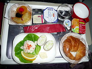 11月14日から10日間、ベルギーとフランスへ行って来ました。今回の使ったキャリアはエアーフランス。テンポクラス(エコノミィーのこと)でも、無料でシャンパンがいただけます。スパークリングワインではなく、シャンパンです。フランスの航空会社だからこそですよね。そして、いただいた食事がこちら。パリにつく前に出た朝食です。特別食のシーフードを日本で注文を出しておきました。アーモンド形に写っているのが白身のお魚のつみれみたいなものでした。丸型のものはポテトサラダ。チーズもついていましたがフレッシュなもの、要するに生チーズです。ほかの方たちにはハムやチーズなどの一般的なものでした。さっぱりして、ハムやチーズの食べたくない方にはお勧めでした。お味はまずくもなく、おいしくもなく、普通としかいいようのないものでしたが。。。。私のお腹にはやさしく、いい感じでした。次回はベジタリアンに挑戦してみたいと思っています。知り合いの客室乗務員のお話ではあまりおいしくないとのこと。でも、エアーフランスを使っている友人に言わせるとエアフランスは違うかもといっています。ためしてみるしかないですね。