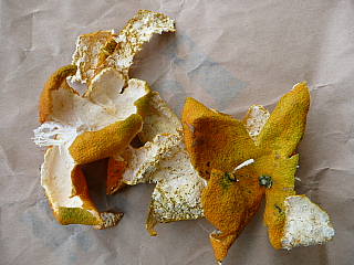我が家の干し物のひとつ、みかんの皮です。最近のみかんって、甘~い!けど、すっぱくないですね。私の好みは甘くてすっぱいみかん。生協で購入した「福岡さんのみかん」。ようやく好みのみかんを見つけました。無農薬のみかんだったら皮を干してみよう!捨てちゃう皮は、なんと!!漢方では「陳皮」といって立派な生薬のひとつです。漢方薬局で買うと結構なお値段です。でも、お家でおみかん食べたらお外に干しましょう。陳皮の出来上がりです。このみかんの皮は体を温め、咳を静めます。風邪のひきはじめにピッタリなんだとか!漢方は煎じてのむのが一般的です。面倒なかたは紅茶を入れるときに一緒に入れて「オレンジティー」に。捨てたら塵だけどね。。。。。干したら漢方に!お試しあれ!!
