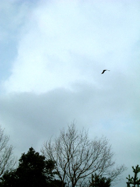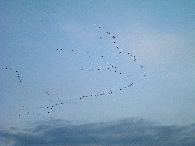 にぎやかな鳴き声に外を見ると、空を横切る、鳥の群れ。まだまだたくさん連なっていました。