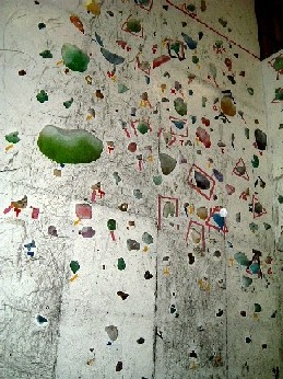 昨日は車酔いで参っちゃいました・・・子供の頃はものすごく乗り物に弱かったけど、大人になって自分で運転するようになってからは、たまにしか酔わないんですけど。どうやらかなり体調が悪かったようです。風邪もちゃんと治ってなかったみたいだし、疲れがたまってたのかも。昨日は、最近よく登場する職場のお姉さんと、仕事が終わってから子供も一緒に遊びに行くことになったのでした。「今日は同居人(ご主人のことです)遅いから、一緒に行かない~?」とお誘いを受けたので。そのときはまだ体調もばっちりだったので、二つ返事でOKしたのでした。でも夕方頃、ちょっと気分がすぐれないかな・・・という感じで、多分換気が悪いせいかな、外に出れば治るかな・・・と思ってたんですが、一度帰ってからお姉さんの車に乗ったら結局酔ってしまった・・・しかも重症。で、どこへ遊びに行ったのかというと・・・たまたま話をしていて、お姉さんと我々親子が同じ施設を利用していることがわかったので、そこに行くことにしたのでした。それは、フリークライミング練習用の施設。前々から、「一緒に行きたいね~」って言っていたので、せっかくのチャンスを楽しみにしてたのに。うちは去年の3月頃行ったきり全然行ってなかったので、10ヶ月ぶりくらいです。子供も久々だったので喜んでました。私も到着してから少し休んだら気分が治ってきたので、2回登ったんだけど、そしたらまた気持ち悪くなってきて、やっぱりダメだ~ということで、結局ダウンしてしまいました。あー、残念・・・帰りの車も悲惨・・・必死こいて我慢して、到着したらもうげろげろげ~の世界に突入。夕食食べてないので、気分直しに飲んだスポーツドリンクと、それでも消化せずに残っていた残骸とをすべて吐き尽くしてしまいました(汚い話でごめんなさい)あー、胃袋がよじれる苦しさ。ひきつってました。吐いたらちょっとよくなったので、お風呂にはいったらまた気持ち悪くなって、またまた吐いてしまったのでした。何もないのを吐くのって、つらいですよね。。。その後も治らないので、一人死んでました。今日も続いて朝から調子よくなくて、でも子供の送り迎えをしないといけないのがとてもつらかったです・・・明日はゆっくり休みます。↓ちっちゃくてよく見えないけど、壁のぼりの壁です。子供が登ってるところを写すつもりだったけどダウンしててすっかり忘れてて、後から「写すから登れ」って言ってもモデルになってくれなかったです。練習は、飛び降りれる高さの壁をのぼるのですが、これが結構おもしろいんです。私は初めてやった時、自分で自分の体重を支えきれない・・・という事実にショックを受けたのでした。