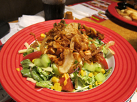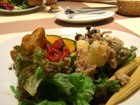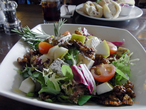 最近、ハードロック・カフェのハニー シトラス グリルド チキン サラダのような、アメリカンダイナー系のレストランなんかでよく見かけるブルーチーズの入っているサラダが個人的にブームになっています(ハードロック・カフェのメニューには具体的に何のブルーチーズか名前は書いておらず、私はグルメじゃないので一口食べて銘柄を当てるなんて芸当はできないのだけど、ブルーチーズらしいクセのある味です)。で今回おいしそうと思って某所で食べてみたのが、これ。ブルーチーズと洋ナシ、バルサミコ酢のかかったクルミのローストにはちみつとマスタードドレッシングがかかったサラダです。まず、洋ナシがサラダにむちゃくちゃ合う! 私はリンゴのスライスより断然こちらのほうが好き。で、このブルーチーズ「ビナム・ブルー」と言うのですが、驚くほどマイルド。私のとっても浅いブルーチーズ歴からの発言で申しわけないですが、こんなにマイルドなブルーチーズは初めてです。ブルーチーズはやっぱりむむっとくるようなクセ?がないとという人には物足りないかもしれませんが、普段ちょっと苦手だという方にはぜひぜひおすすめ。こちらも食べやすい青カビチーズ:【3%OFF】とっても食べやすい青カビ【限定セール】イギリス産チーズ♪ほんのりとした甘みが優しい青カビチーズ!『シャロップシャーブルー』約200gオーダーチーズ楽天市場支店