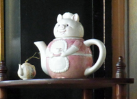 実はブタグッズに目がない私なのですがお店の軒先で見かけて、つい買ってしまった。ブタのメイドさんポットです。笑顔がかわいくて、見てるだけでちょっと幸せ。