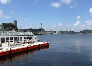 先日「YOKOSUKA軍港めぐり」に行きました。暑かったけど、やっぱりこういうのは晴天の日が最高!船の中は冷房が効いているし、写真を撮りにデッキに出ても、海上は風が涼しくて、快適です。知人が子供を連れて以前に行ったときは、満席で乗れなかったというのでサイトから予約を入れましたが、今回はそれほど混んではいませんでした。「軍港めぐり」を運行しているトライアングルのサイトです乗船場からの眺め。こりゃなんだ? アメリカの軍艦かな、忘れてしまいました。ちゃんと説明してもらっているのに。左の船は海洋観測船。下の写真は左から護衛艦「みょうこう」「ありあけ」「きりさめ」です。みょうこうはイージス艦だそうです。だからどうなのかと聞かれても、私には答えられませんが…45分のクルーズですが、掃海艇は木でできているとか、軍艦が灰色なのはなぜかとか、いろいろな話も聞けて楽しいです。私は別に軍艦に興味があったわけでは全然なく、ただ、母が前に参加して「面白かった!」と強力にプッシュするので試しに行ってみただけなのですが…確かに面白かった。米国の軍艦など右方向の船を見ることが多いので、そちら側の席を取った方がいいかも。(乗船したら、進行方向に向かって右側から埋まっていくのでなぜかなあーと思いながら左に座ったら、すぐに理由が判明。皆さま、よく知っていらっしゃる!)厳密に言うと、横浜じゃなくて横須賀なのですが、横浜から電車で30分ということで、ちょっと足を延ばしていかがでしょうか。軍港めぐり乗船場のすぐそばにあるのが「メルキュールホテル横須賀」です。メルキュールホテル横須賀みょうこうは映画「亡国のイージス」で主役艦の「護衛艦いそかぜ」として使われたそうです。亡国のイージス プレミアム・エディション