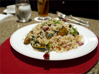日本橋のロイヤルパークホテル内のカフェ「シンフォニー」に行きました。メニューにたらことかぼちゃとほうれん草のピラフというのがあり、たらこピラフとは珍しいな、とさっそく注文してみました。(ディナービュッフェもおいしそうなのだけどダイエットを考えて今回はパスと思ったら、ピラフもバターたっぷりカロリーたっぷりですよね)これが、バターが効いていて、たらこのかたまり(?)もぷちぷちで、かぼちゃはホクホクで甘みがあっておいしい!ちなみに、上記三種類のメインの材料のほかにベーコンなども入っていました。家でもたらこチャーハンを試してみたい感じ。おすすめです。ロイヤルパークホテルロイヤルパークホテルを利用するのは、TCATからリムジンバスで成田空港に行くのに便利だからですが、今回ロビーで見たパンフレットには、日本橋の老舗を訪ねるとか東京穀物商品取引所の屋上(?)で飼っているミツバチの見学などあって、ちょっとユニークな催しがあるようなので、今度ぜひ、どれか参加してみたいです。安産・子授け祈願の水天宮にとっても近いので、それにちなんで戌の日には妊婦さんや赤ちゃん向けの企画もあるようです。