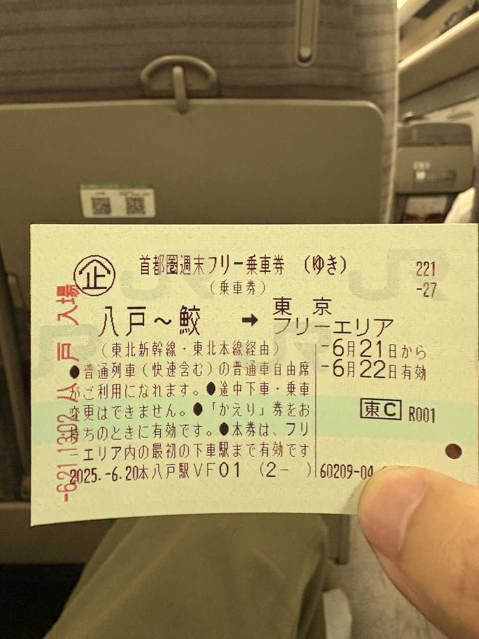 新幹線で上京北東北発週末首都圏フリー乗車券上京する際には愛用していたきっぷこの6月で販売終了なんです実家の神奈川県に移動する際に便利でしたゆき券とかえり券がセット乗車券八戸〜東京の乗車券正規料金は片道9590円往復は19180円それが14450円になる新幹線指定券が別途に必要ですがそれでもかなりお得ですフリーエリアも首都圏かなりカバーするこの週末で目いっぱい使い納めしましたこの他の週末お得なきっぷも販売終了になった新幹線eチケットはトクだ値14とかネットで事前予約割引率の高い指定券は席数枠が少なくすぐに満席になる正規料金でしか買えないよう仕組まれてるようなもの鉄道旅お高くなっています