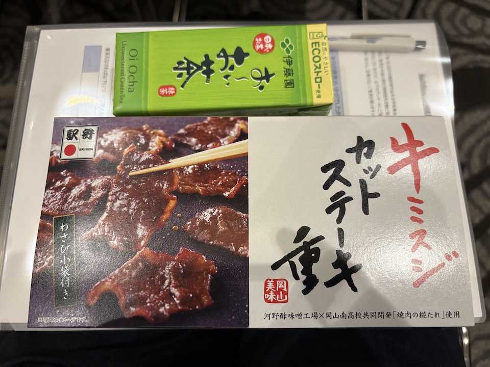 岡山出張ですお昼は無料で弁当が支給されるの牛ミスジカットステーキ重岡山の駅弁だねミスジって肩甲骨のあたり希少部位らしいよどんなの?焼肉タレが地元の工場と高校の共同開発なんですってミスジ肉肉しくて美味しいおかやまスタンプラリーにチャレンジ!15スタンプ最高賞の桃太郎賞は大手まんぢゅうゲット!大手まんぢゅう餡が上品な甘さなのそして...会場内のカフェでドリンク300円引き券どうせなら珍しいの選ぼうキャラメルマキアートって何?キャラメル味の新しいコーヒーかな美味しい〜おしゃれドリンク初めていただきました