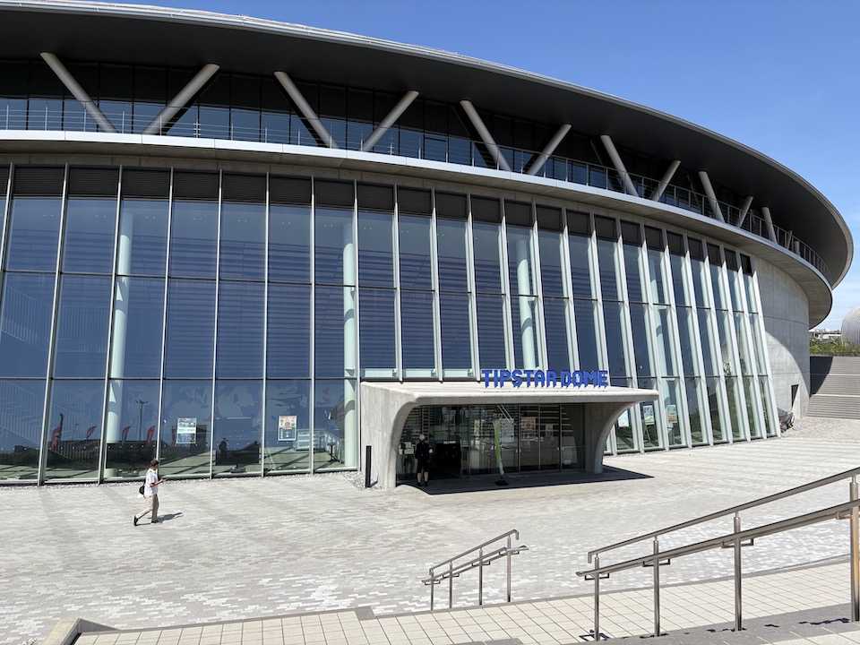 千葉県千葉市駅からハイキングTIPSTAR DOME CHIBA円形のドームだね入れるの?駅ハイマップ提示でステッカー貰えた恐竜の骨格?どんな意味があるのかわからない2階へ行くんだねん?ここは屋内競輪場だ‼️1周250mのトラック屋内の木製バンク席とトラックが近い❣️6人の競輪選手が6周して争う臨場感スピード感かなり興奮しそうコーナーの最大斜度が何と..42.6度だってすごいよね国際的なルールの「ケイリン」という感じかな日本ではTIPSTAR DOME CHIBAだけで開催入場券は2000-5000円普通の競輪より高め車券はネットのみで購入可能らしい駅ハイ参加者は試合前の時間だけ無料で見学可でしたこの企画いいじゃん❣️TIPSTAR DOME CHIBA