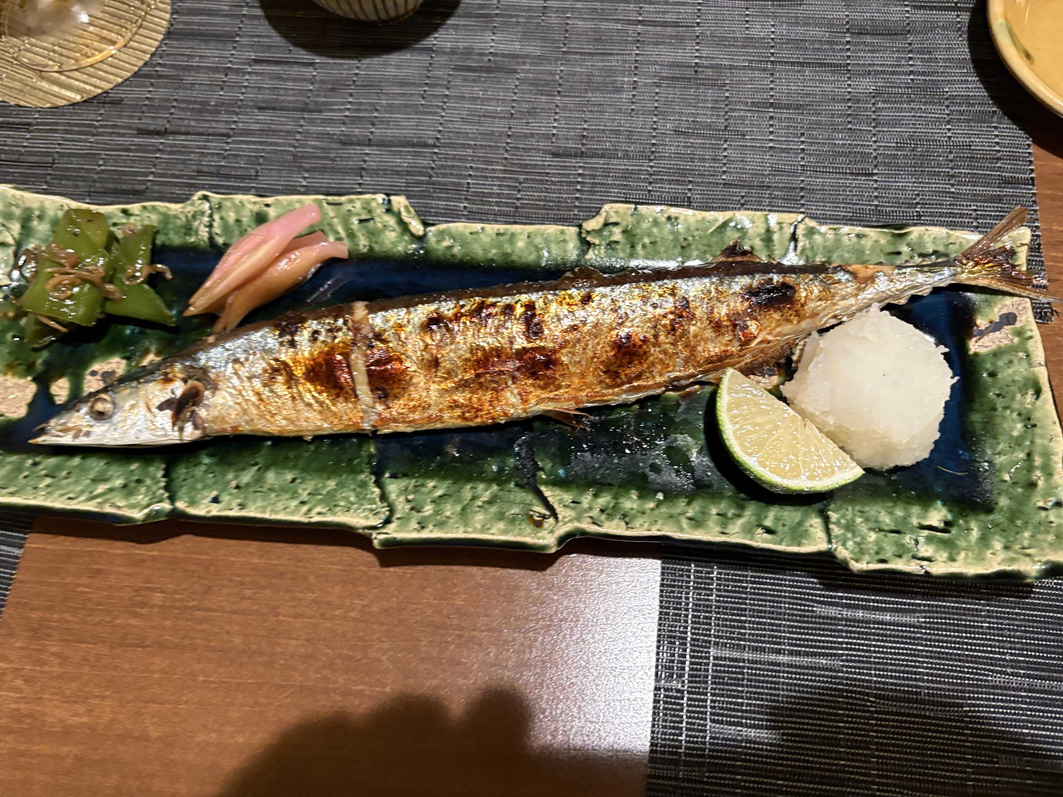 昨日は、仲良しmさんと居酒屋おが咲へ。きみちゃんも合流して、3人で食事しました。特大さんまの塩焼き。北海道産です。鮮度良く、脂も乗って秀逸でした。皆さん、今年のさんまを召し上がりました?これからだんだんと魚体が小さくなっていくそうですよ。居酒屋おが咲さん。創作和食、面白くて美味しいんです。締めは、干し芋ブルーチーズのせ焼き。おっ美味い。これ、家でもやってみようと思います。