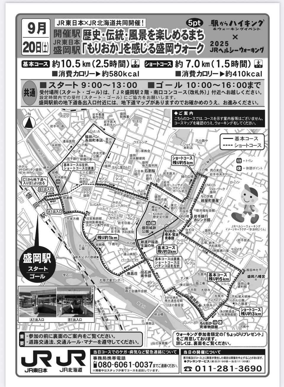 岩手県盛岡市ですJR北海道ヘルシーウォーキングに参加しました盛岡ウォーク低気圧接近雨が降ってきましたよショートコースに決まり駅地下の食事処でランチです盛岡名物じゃじゃめんスープじゃじゃ盛岡じゃじゃめんというとお皿に盛られた白い麺肉味噌きゅうり紅生姜混ぜて食べるのが一般的なスタイルスープじゃじゃこの店のオリジナルメニュー温かくて美味しいね❣️盛岡の最高気温20℃肌寒いくらい温かいスープのじゃじゃ麺がピッタリそのままゴールポイント認めてくれる駅ハイアプリだと歩行距離が足りないとか...厄介だよね北海道ウォークは寛容ですだから好きなの参加賞もくれるしね帰りは高速バスでした