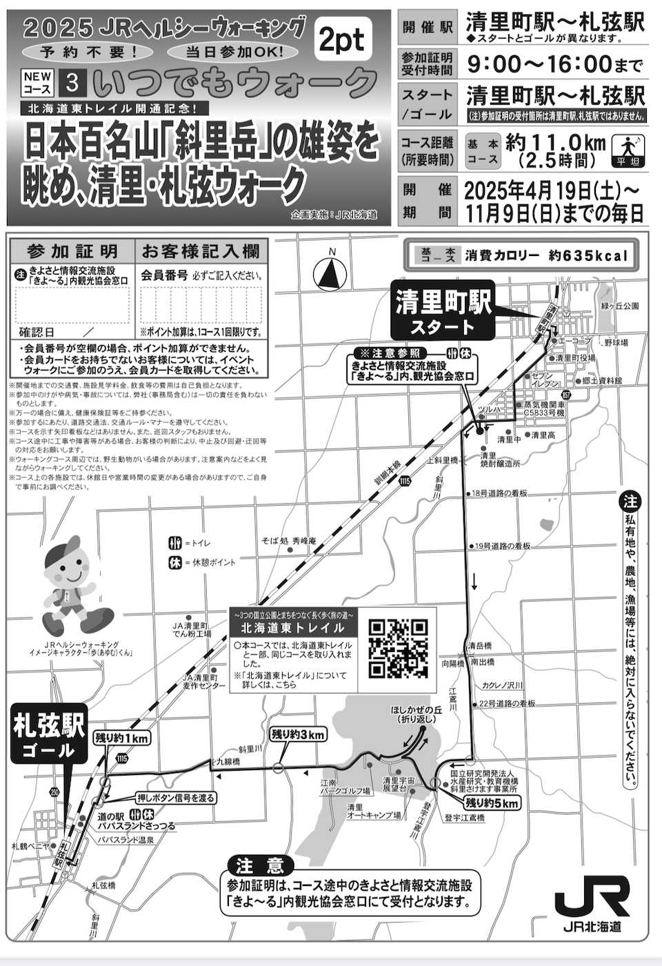 北海道清里町ヘルシーウォーキング日本百名山「斜里岳」の勇姿をながめ、清里・札弦ウォークはじめての清里しかも新コースですワクワクする〜清里町駅受付のきよ〜るまで15分ほど歩くC58蒸気機関車きよ〜る受付の職員に「熊、出る?」と聞いてみた熊いないとは言い切れないですが...との回答やっぱりそうだよね今やどこで遭遇するかわからないところで...清里町には名産があるのじゃがいも原料の焼酎が有名なんですスタート!塔のある建物がじゃがいも焼酎工場民家はところどころにあるけど独り歩きワクワクなのにかなり不安やっぱり熊さん怖いんだよ熊鈴チリンチリン鳴らして歩きますきよ〜る