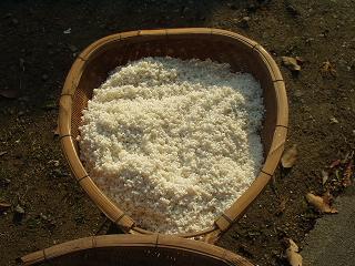 私の妻の実家では、毎年12月30日に餅つきを行います。それも昔ながらのかまどでもち米を炊いて、臼と杵で餅をつきます。最近は保育園や小学校でもそういうのをみかけますね。 ところで、餅をつく機会はなかなかないので、自宅で餅をつくことがあっても餅つき機でつくでしょうし、大概は「餅は餅屋」じゃないけど買うことが多いのではないでしょうか。 でも、昔ながらの臼と杵でつく餅はとてもやわらかいし、餅つき機だとついている最中に空気が入らないから餅の伸びが悪い(義母さん談)とのことです。 それでは、今回の餅つきの模様をお伝えします。 まず、もち米です。一晩水に付けおきしておき、水を切ります。 これを炊くのがこのかまどです。「おくどさん」ともいうそうです。 実はこのかまど、5年ほど前に妻の実家の風呂場改修の際に撤去される寸前でしたが、妻のおばあさんが反対されて残りました。 おかげで、昔の餅つき風景を演出するアイテムとして存在感を高めています。 できたもち米を「ぺったんこ」する臼と杵です。臼は石臼で、杵はとっても重い杵です。杵は重いので、一生懸命打たなくてもいいんです。 もち米が蒸し上がって、つき始めるところです。 いきなり「ぺったんこ」出来ないんです。まずは、杵でもち米をつぶすようにしていきます。腰を入れてリズミカルにつぶしていきます。 つぶしていくのは、意外としんどいのです。 これを少しずつまとめていくだけでも、餅っぽくなります。 ある程度まとまれば、やっと「ぺったんこ」できます。前出のとおり、杵が重いのでそんなに気合を入れて「ぺったんこ!!!」しなくても大丈夫です。 ぺったんこを繰り返していくと、このようになって完成です。 あー疲れた。 でも、いい感じにできているでしょ。 つきあがった餅を大きなたらいに入れて、餅を取り分けます。 取り分けるのは、妻と妻のおばあさん、義母さんの3人です。 小餅状に取り分けたところです。 この餅が入っている箱、かなり年季が入っていて「昭和二十六年十一月」って書かれていました。その時期に購入されたんなら、50年前のものです。 餅は2回ついたのですが、もう一回の分はもち米100%ではなく、普通の米を半分くらいと塩を混ぜたものです。だから、つくのもちょっとしんどいし、まとめるのも苦労します。 ちなみに、この写真の四角い餅のことをこの辺りでは「ねこ」といいます。一般的には「のし餅」というそうです。どうやって食べるかというと、薄くスライスして、普通の餅と同じように雑煮に入れたり、焼いたり、油で揚げたりして食べます。ほどよく塩味が効いているので、なかなかおいしいですよ。 こうして年末恒例の餅つきが終わりました。 立派な餅もできたので、雑煮が楽しみです。
