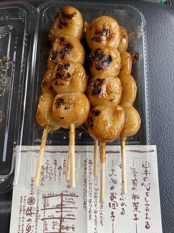 今年のGWに私が買ってきた近鉄大阪線三本松駅近くのところもそうでしたが、奈良県のみたらし団子はしょうゆ味のみたらし団子が多いのかな。大阪だったら甘めもタレのかかったところが多いんですけどね。