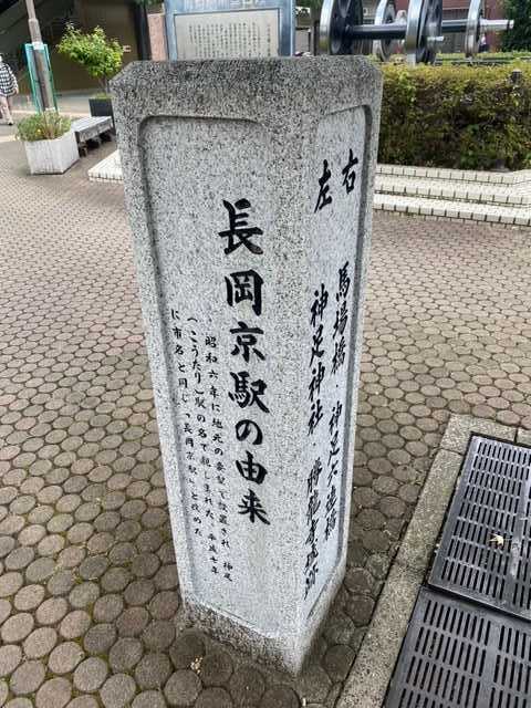 駅前に記念碑の「長岡京駅の由来」というものもありました。それによると、昭和6年(1931年)に地元の要望で駅が作られて神足駅(こうたりえき)として親しまれたが、平成7年(1995年)に市名に合わせて長岡京駅となったことが書かれていました。