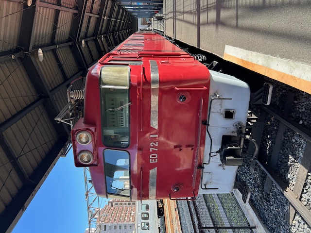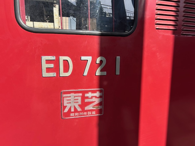 このED72は1961年に東芝で製造されたもの。赤い車体は交流電気機関車の特徴です。今のJR貨物でも交流区間を走る電気機関車には赤い色が使われていますね。