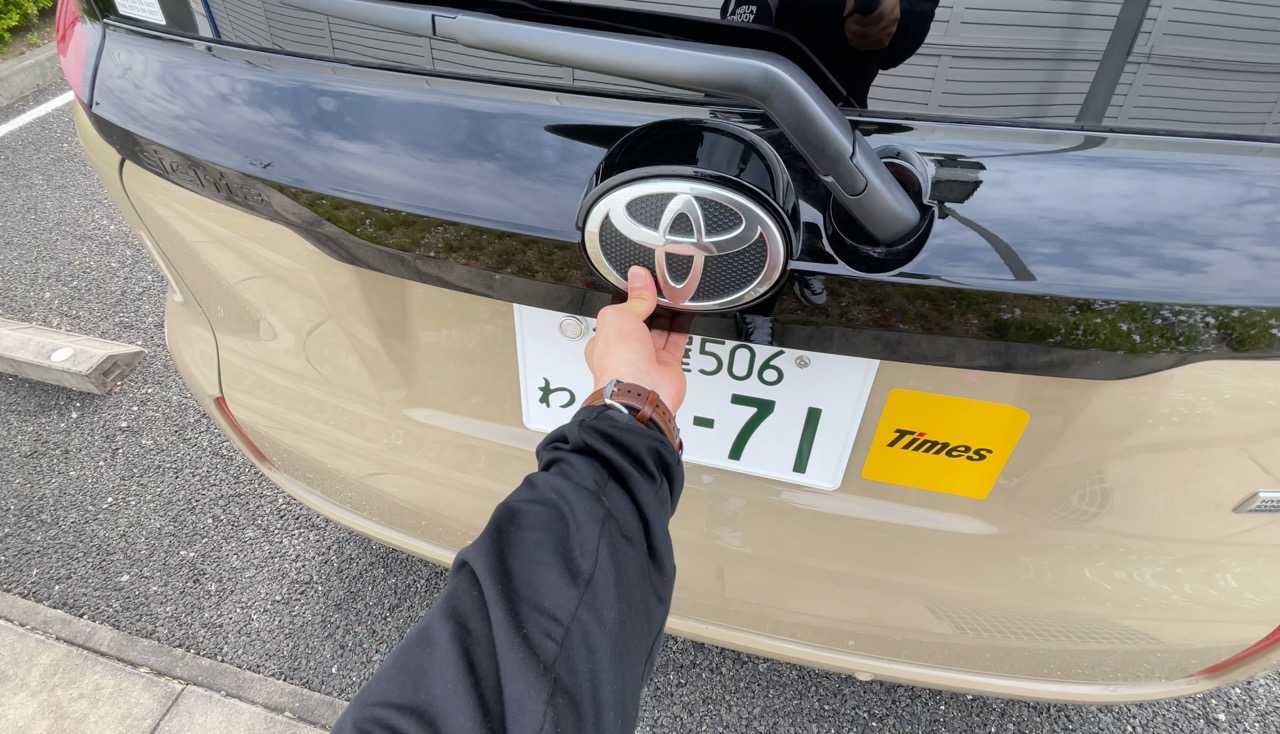 リアドアのレバーはトヨタエンブレムの真下にあります​