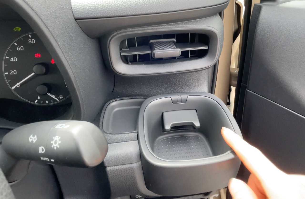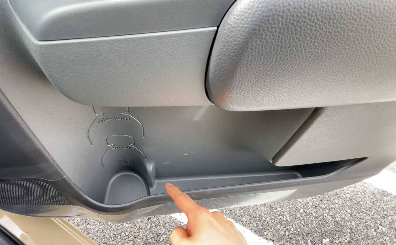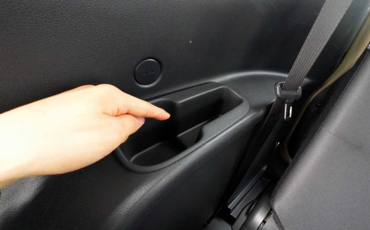 普通の車ならドアレバーの下に配置されているので、少し違和感ですね