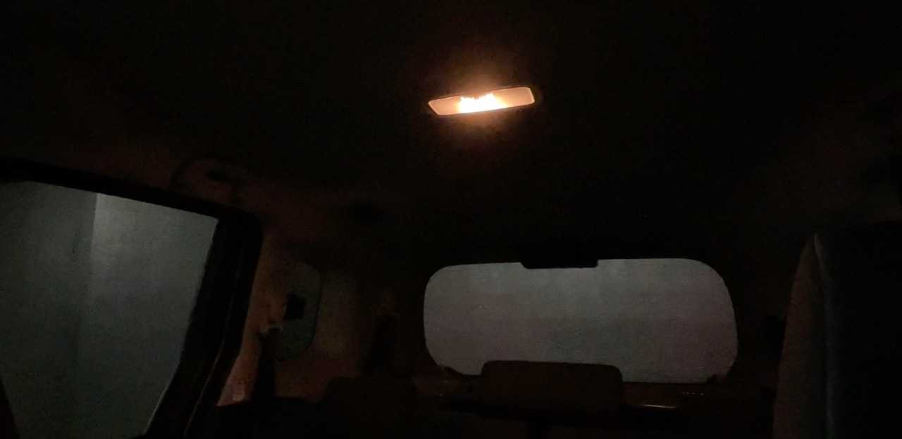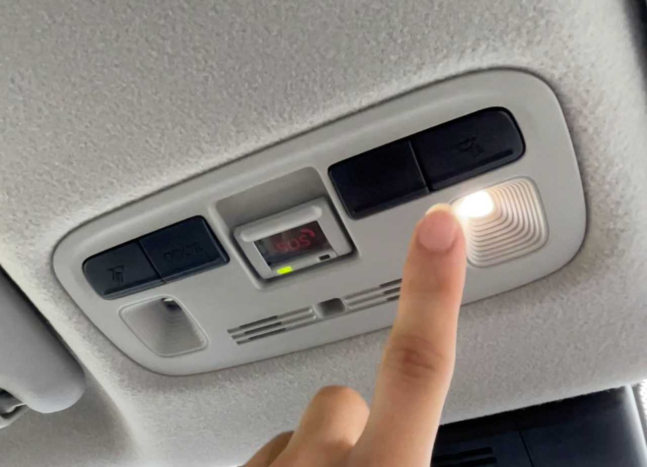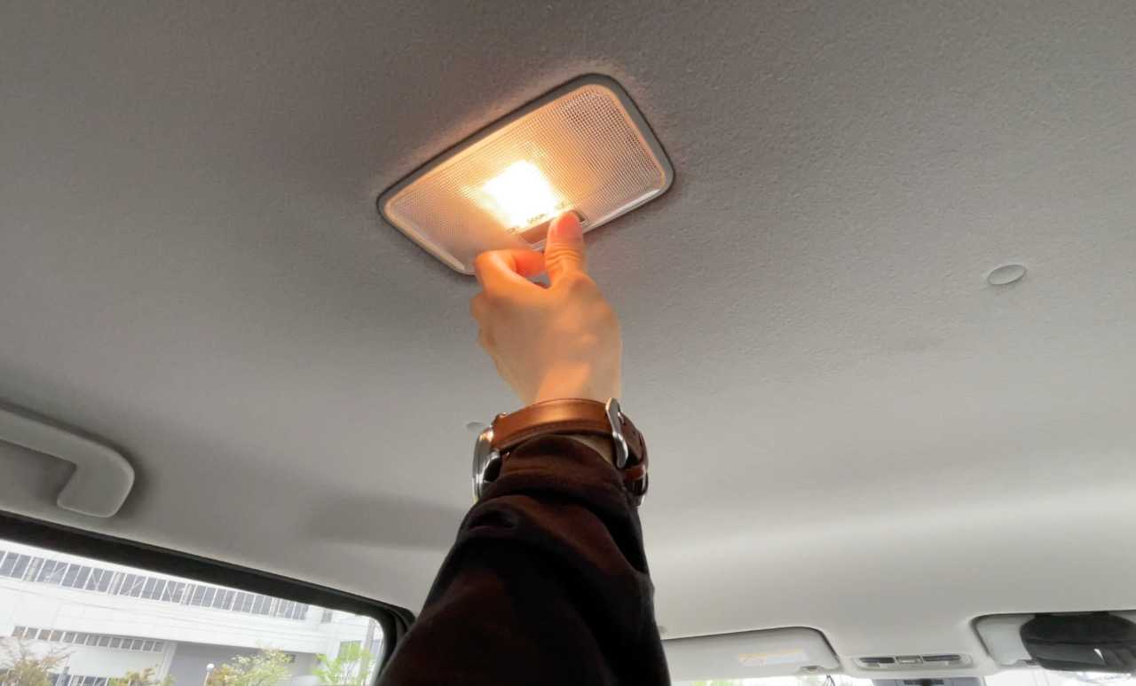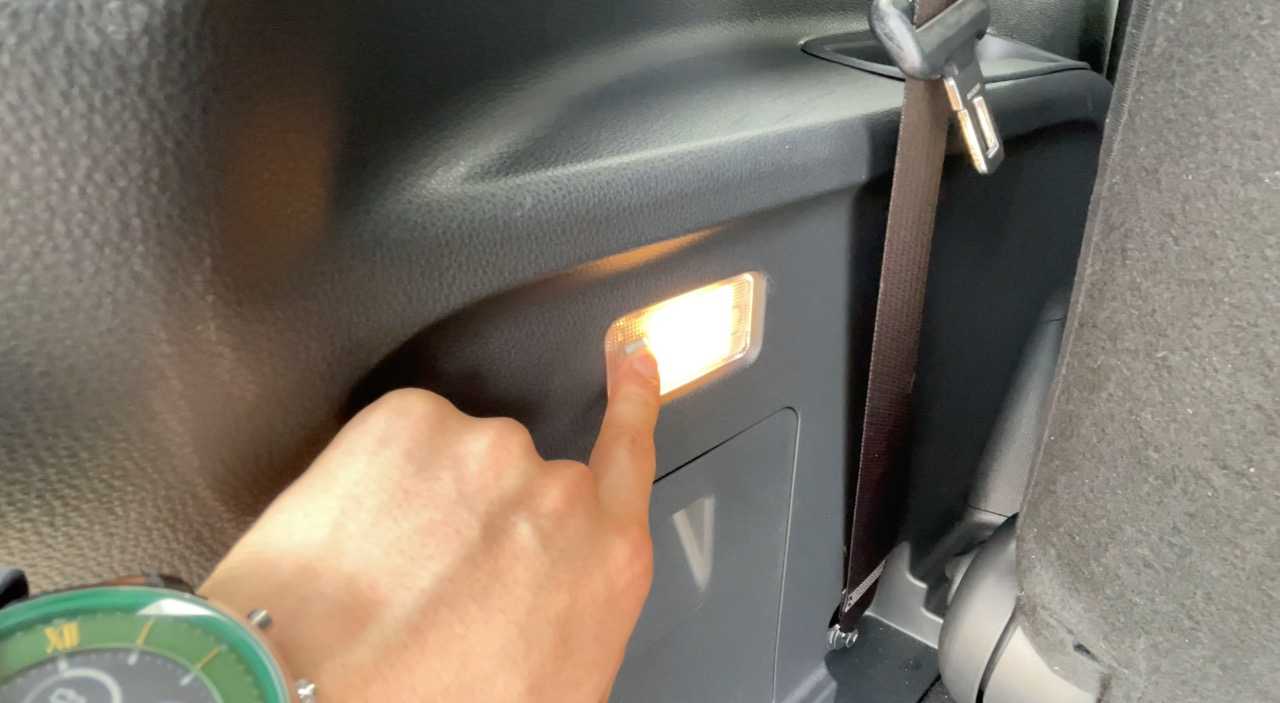 前席のルームライトを点灯させると、後席(2列目)のライトも連動して点灯します