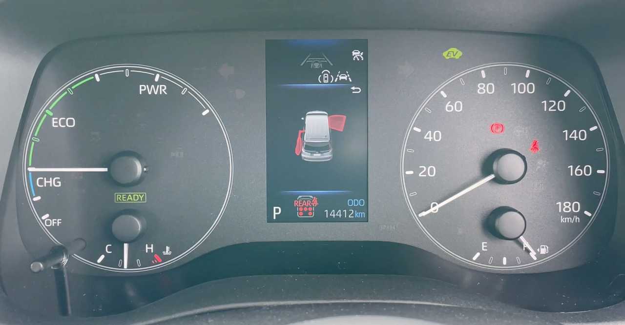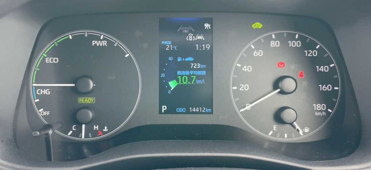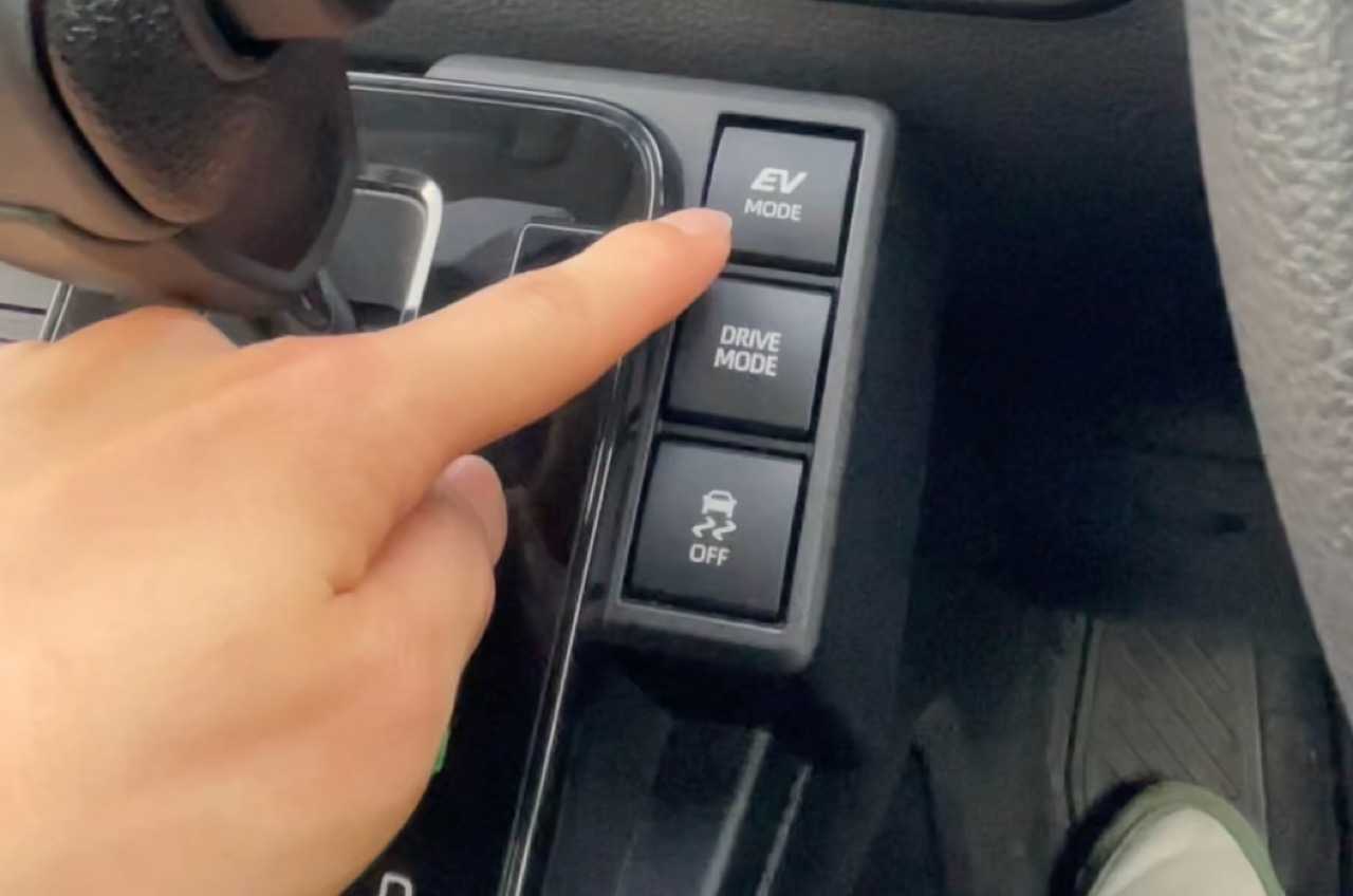 シフトレバーの隣にはEVモード切り替え、ドライブモード切り替え、TRF OFFのスイッチがあります