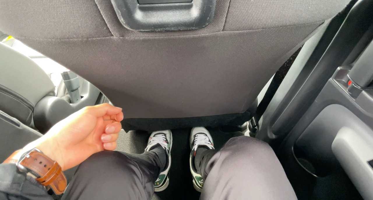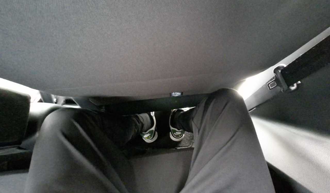 一番前にスライドすると、足元スペースはこぶし1.5個分ですね