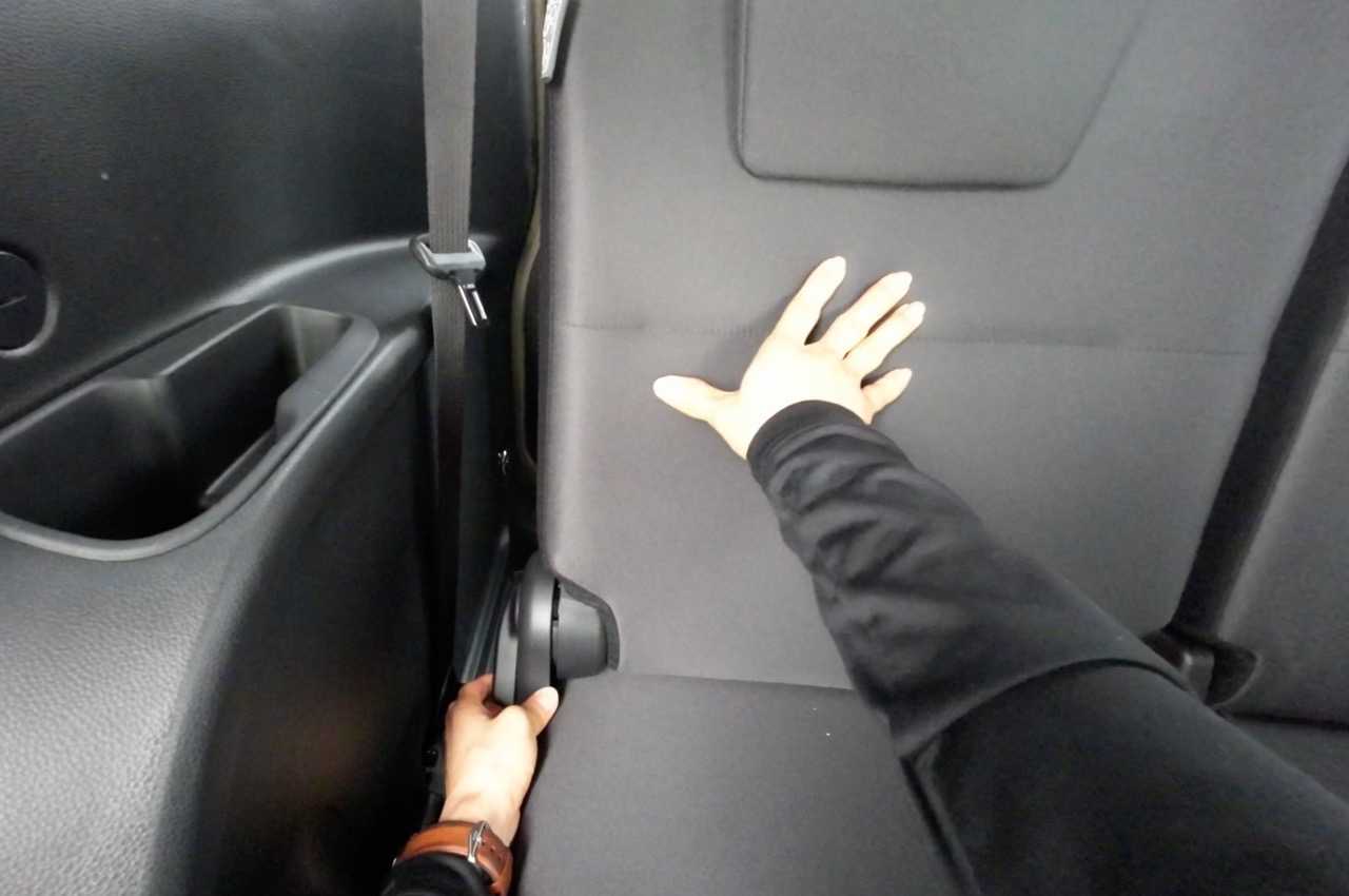 ①3列目にアクセスするときと同じように2列目シートを跳ね上げる