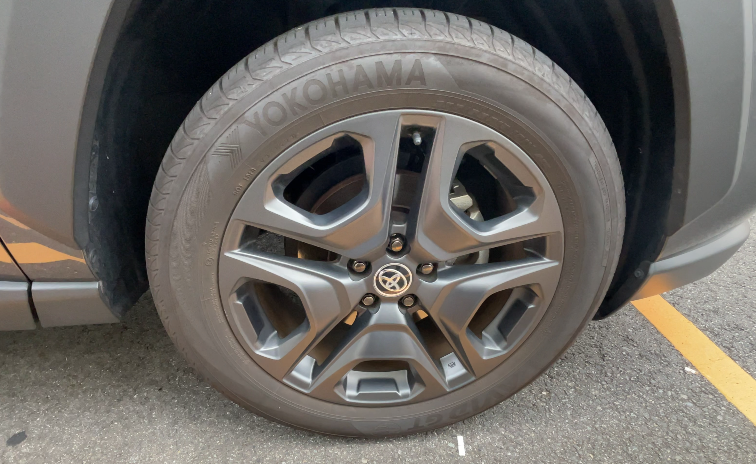 足元は、マットブラックのトヨタ純正ホイールに、横浜タイヤ (サイズは235/55R19) を装着