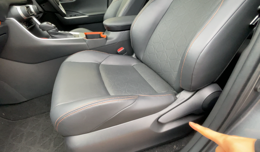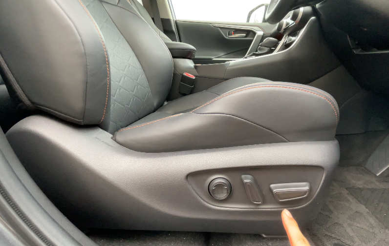 運転席はパワーシートになっており、前後スライド、シート高さ、座面角度、リクライニング角度、ランバーサポートの調節が可能です