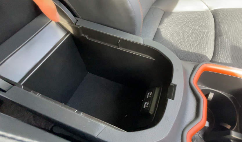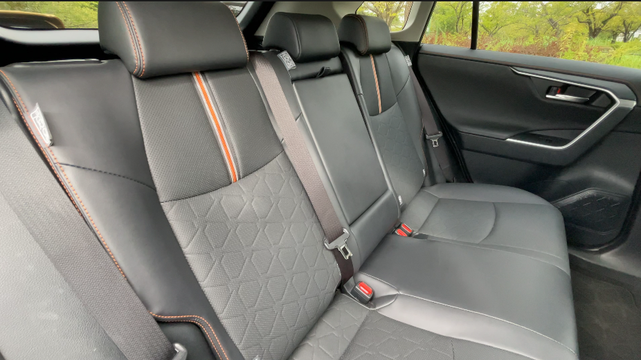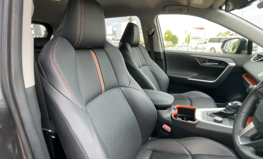 フロントシートは、ブラックレザーにオレンジのステッチが施された、スポーティなデザイン
