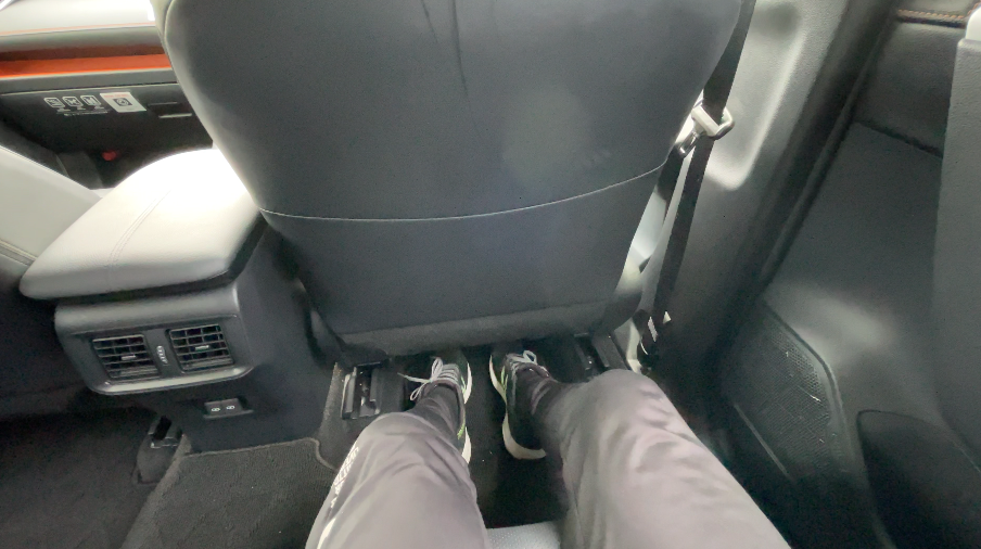 運転席を身長160cmの私のポジションに合わせた状態で、足元は拳3.5個分くらいのスペース