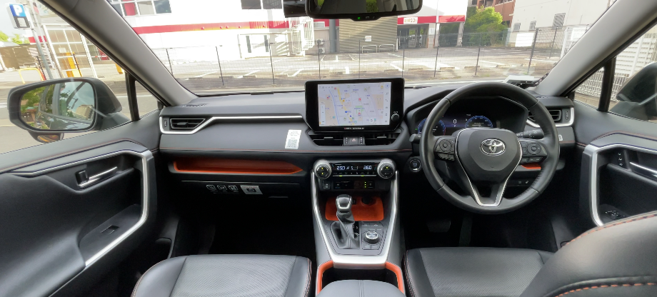 インテリアは、ブラックを基調にオレンジのステッチがアクセントとして効いた、スポーティながら上質な空間が広がっています