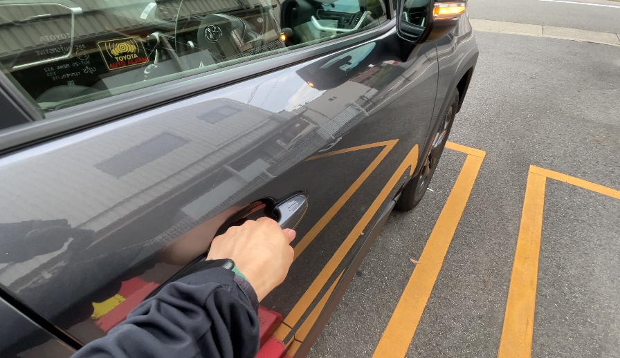 キーを携帯したままドアハンドルを握ると解錠、ドアハンドル前方にあるセンサーに触れると施錠されるスマートエントリーも搭載しています