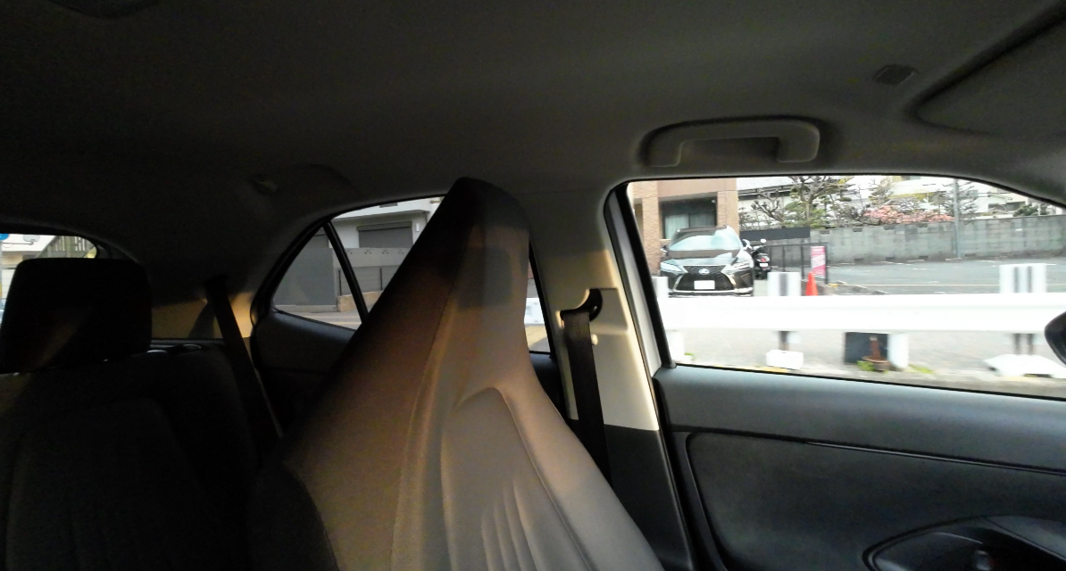 後方: 後席窓は大きめで視界は良好です。Cピラーはやや太いので注意が必要です。