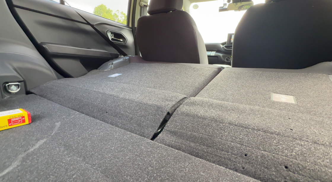 後席シート背面は少し斜めに上がっていますが、段差はそれほど大きくないので荷物は前に滑り込みやすいかと思います。