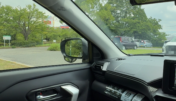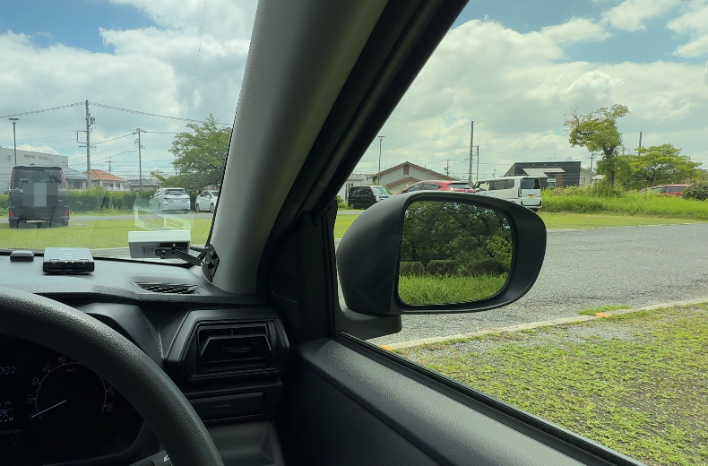 右側の視界は、Aピラーとサイドミラーの間にツイーターが格納されている部分があるので、少し死角になります。